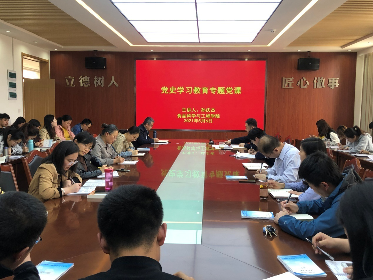 5月6日,beat365在线体育官网在食品楼会议室召开党史学习教育专题党课,学院院长孙庆杰担任主讲人,学院全体师生党员参加,会议由学院党委书记宋伟主持。