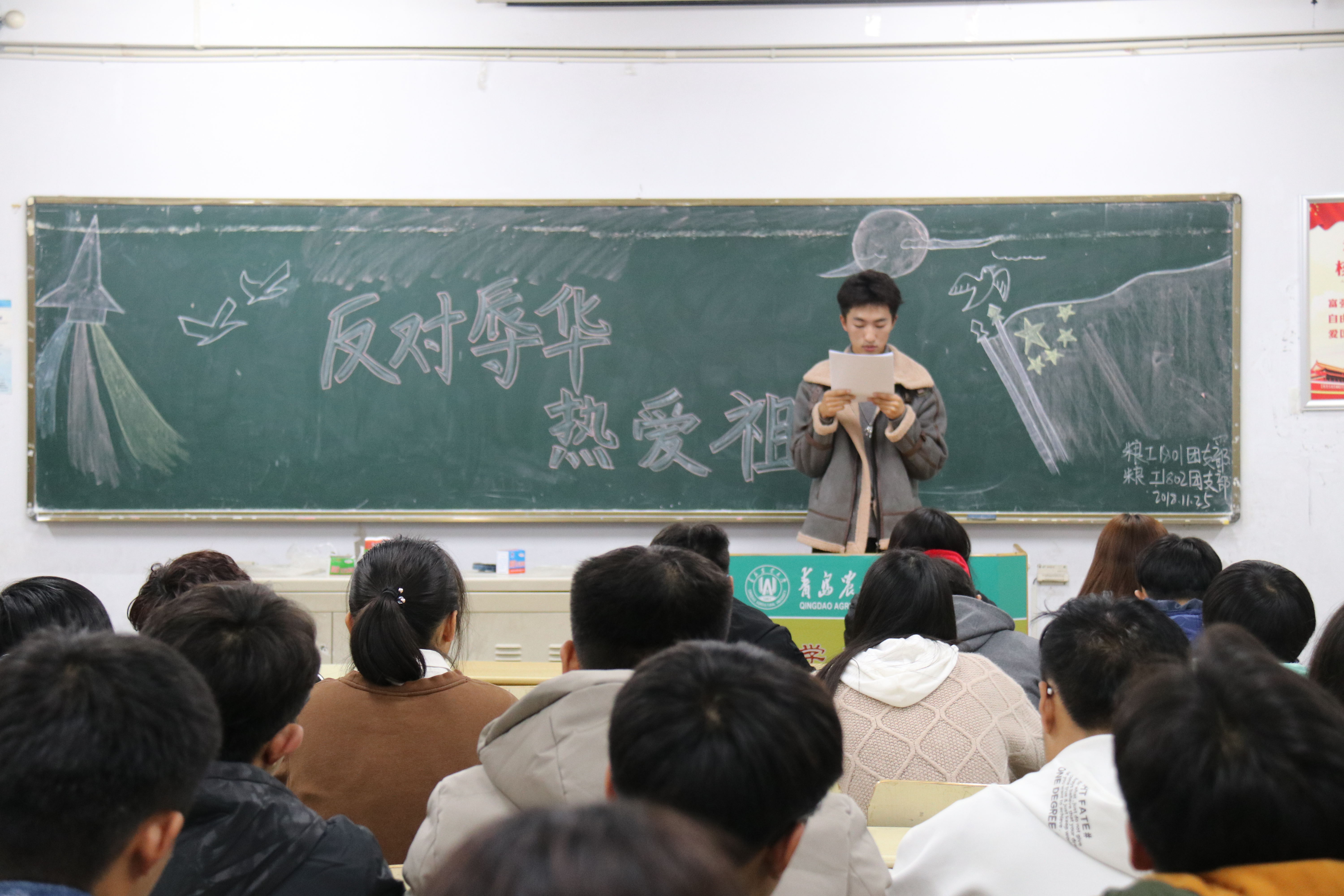 11月25日,beat365在线体育官网在教学区开展“爱国教育”主题政治学习。学院2018、2017级全体学生参与了此次学习。