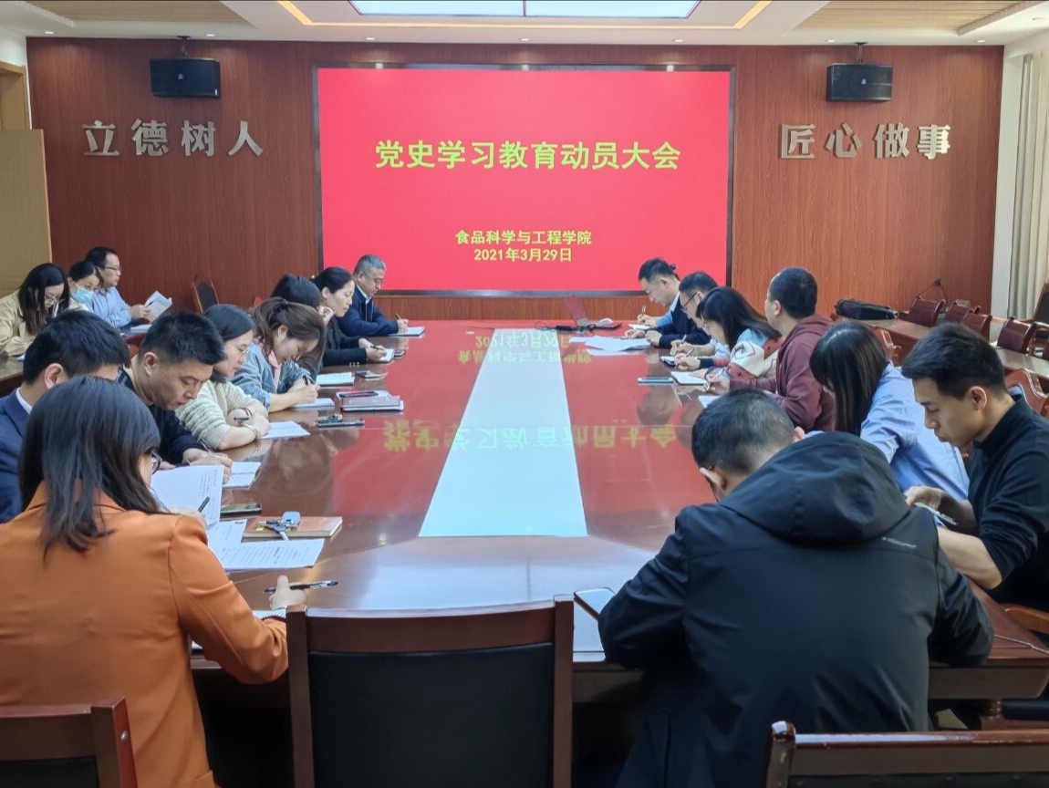 3月29日,beat365在线体育官网在食品楼会议室召开党史学习教育动员部署大会,学院党政领导班子成员、全体行政人员、党支部书记和支部委员参加。会议由学院党委书记宋伟主持。