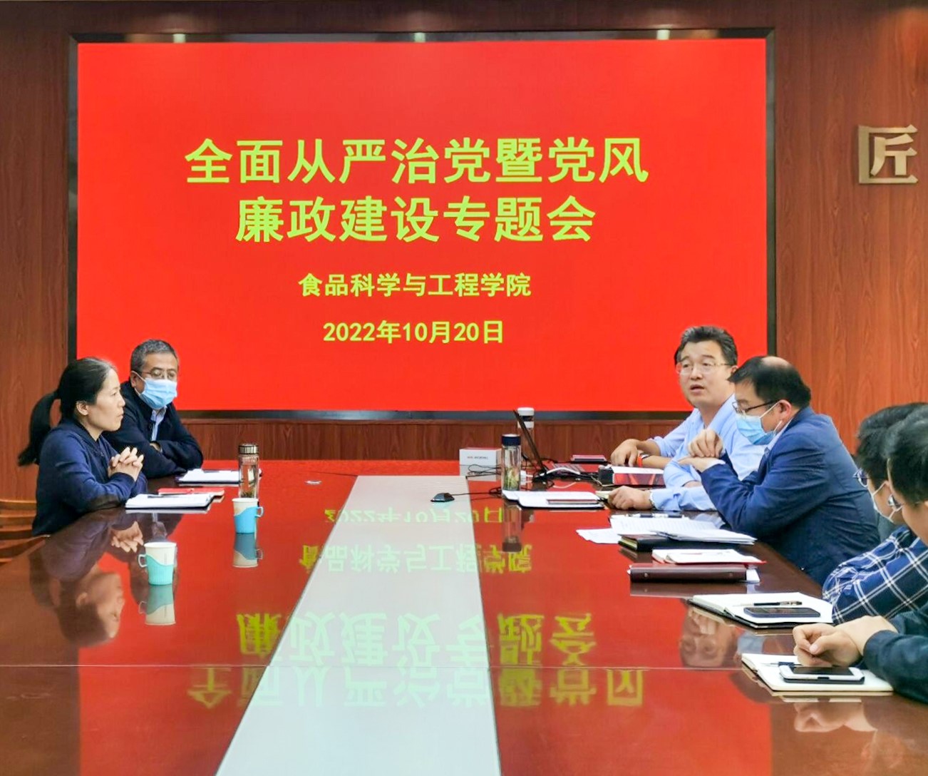 10月20日,beat365在线体育官网在食品楼召开全面从严治党暨党风廉政建设专题会。学院党委班子成员参加会议,会议由党委书记车广杰主持。