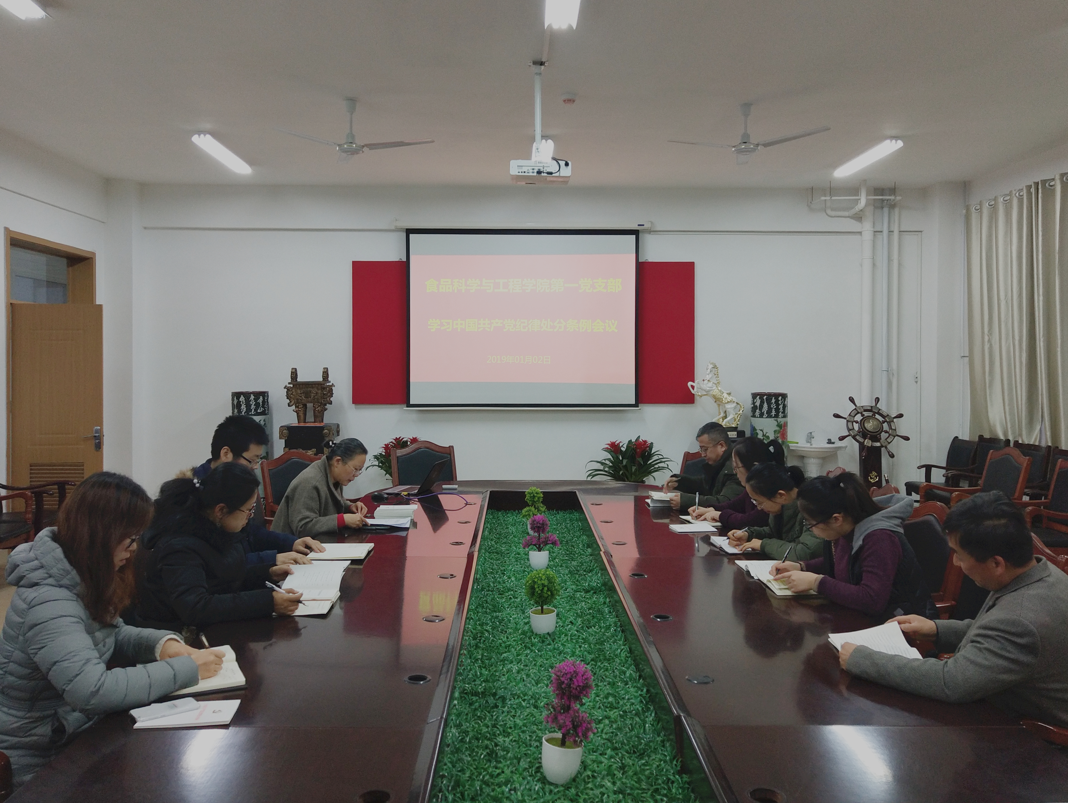 1月2日,beat365在线体育官网各党支部开展主题党日活动,结合《关于进一步严明2019年元旦春节期间纪律要求的通知》(青农大纪字[2018]18号)要求,组织党员再次学习了新修订《中国共产党纪律处分条例》。