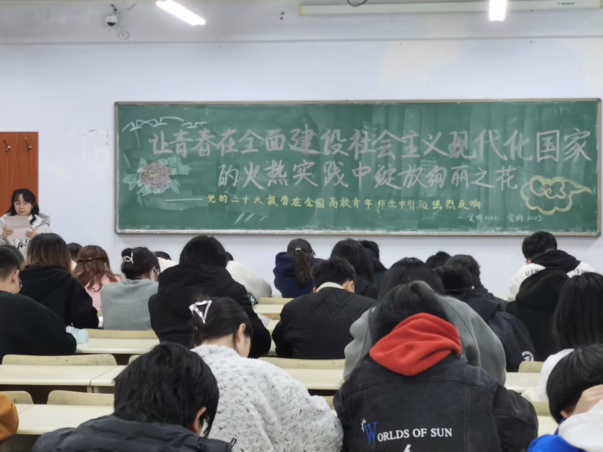本次团课学习过程中,各班主讲人通过党的二十大报告在全国高校青年师生中引起的强烈反响,带领同学们学习党的二十大精神,深入领会了党的二十大报告对青年成长成才及未来发展前景带来的深刻意义。各班主讲人在学习交流中呼吁同学们要坚定不移听党话、跟党走,时刻牢记历史使命,立志做有理想、敢担当、能吃苦、肯奋斗的新时代好青年,让青春在全面建设社会主义现代化国家的火热实践中绽放绚丽之花。