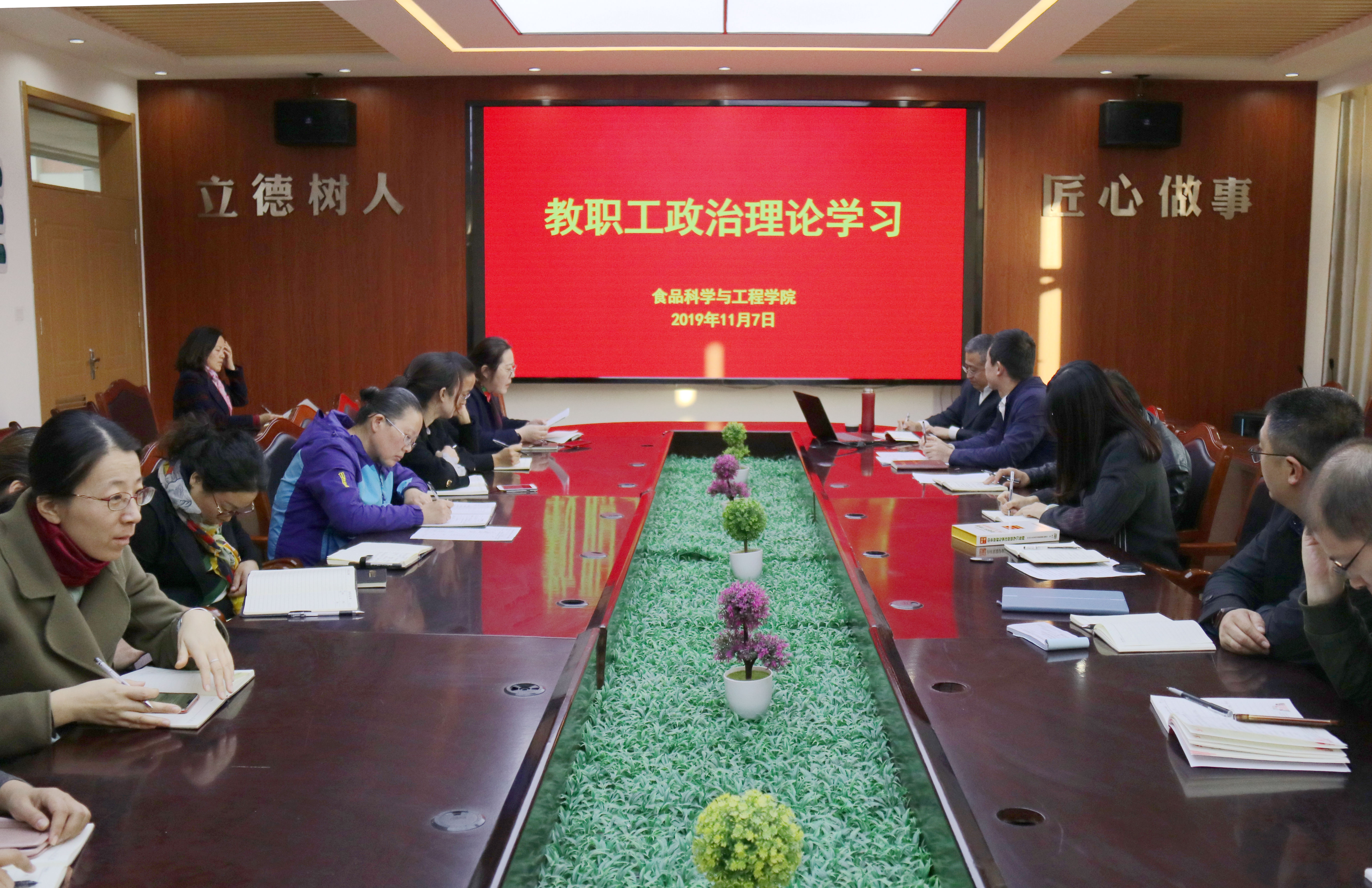 11月7日,beat365在线体育官网副院长孙庆杰、陈海华在食品楼会议室为全体教职工讲专题党课。