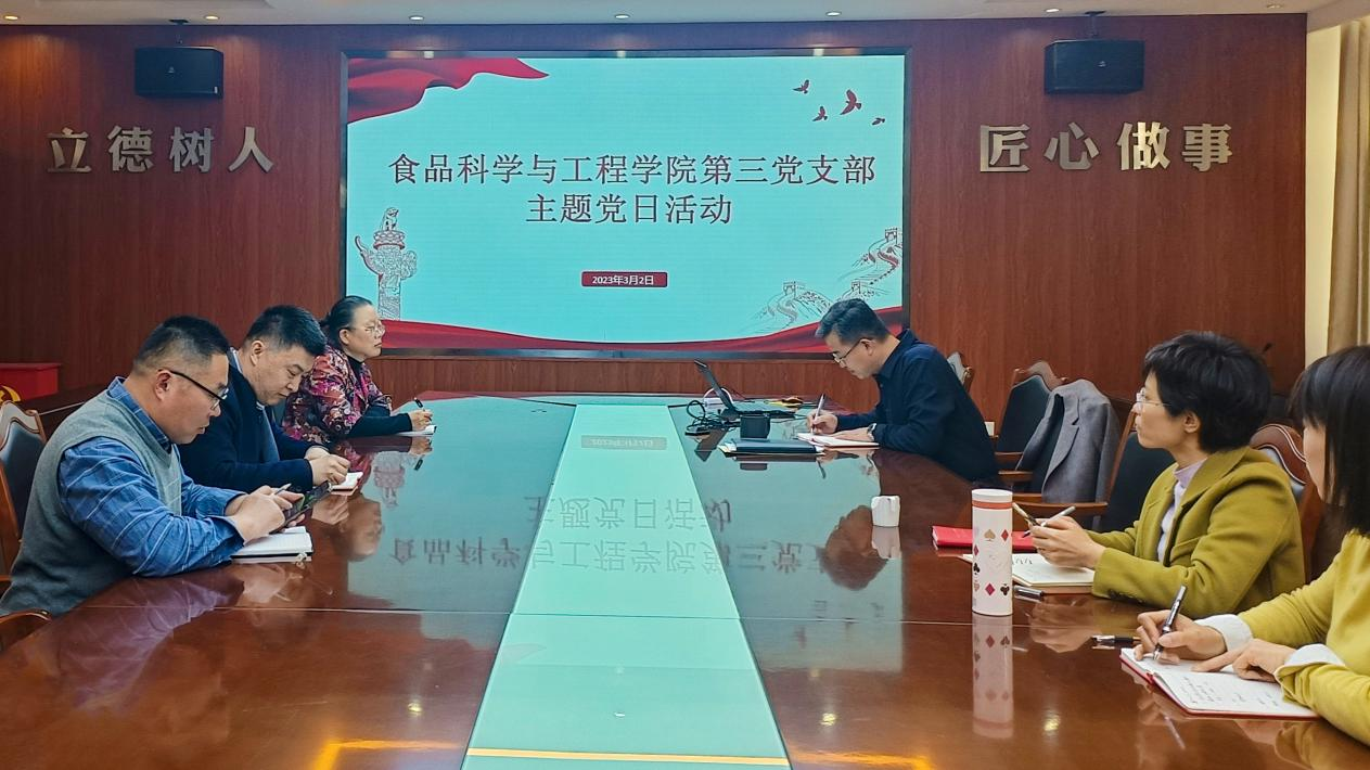 2023年3月2日,beat365在线体育官网第三党支部在食品楼310开展“加强基础研究,推进科技强国”主题党日活动,第三党支部全体党员参加。活动由学院党委委员、第三党支部宣传委员程致远主持。