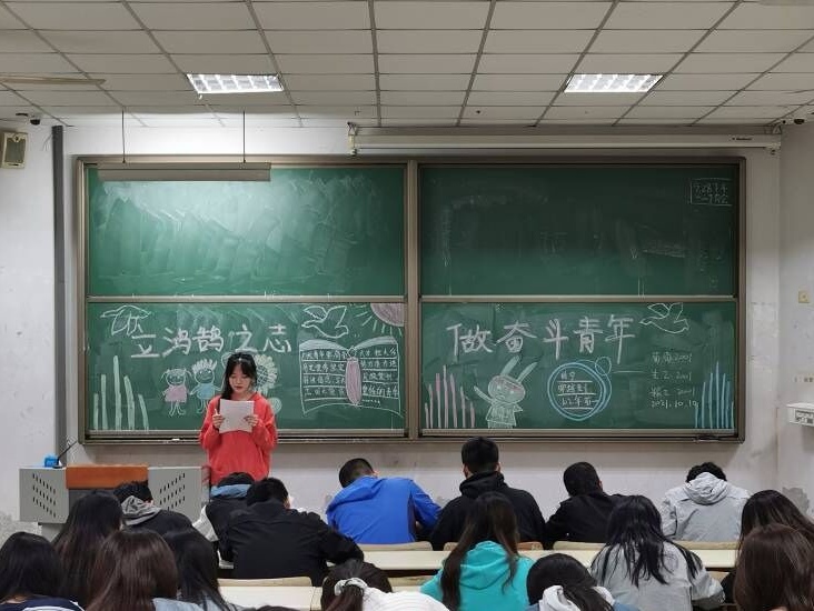 为激励同学们坚定理想信念,增强爱国主义精神,10月10日,beat365在线体育官网在教学区开展“立鸿鹄之志,做奋斗青年”主题政治学习。学院2020级全体同学积极参加。