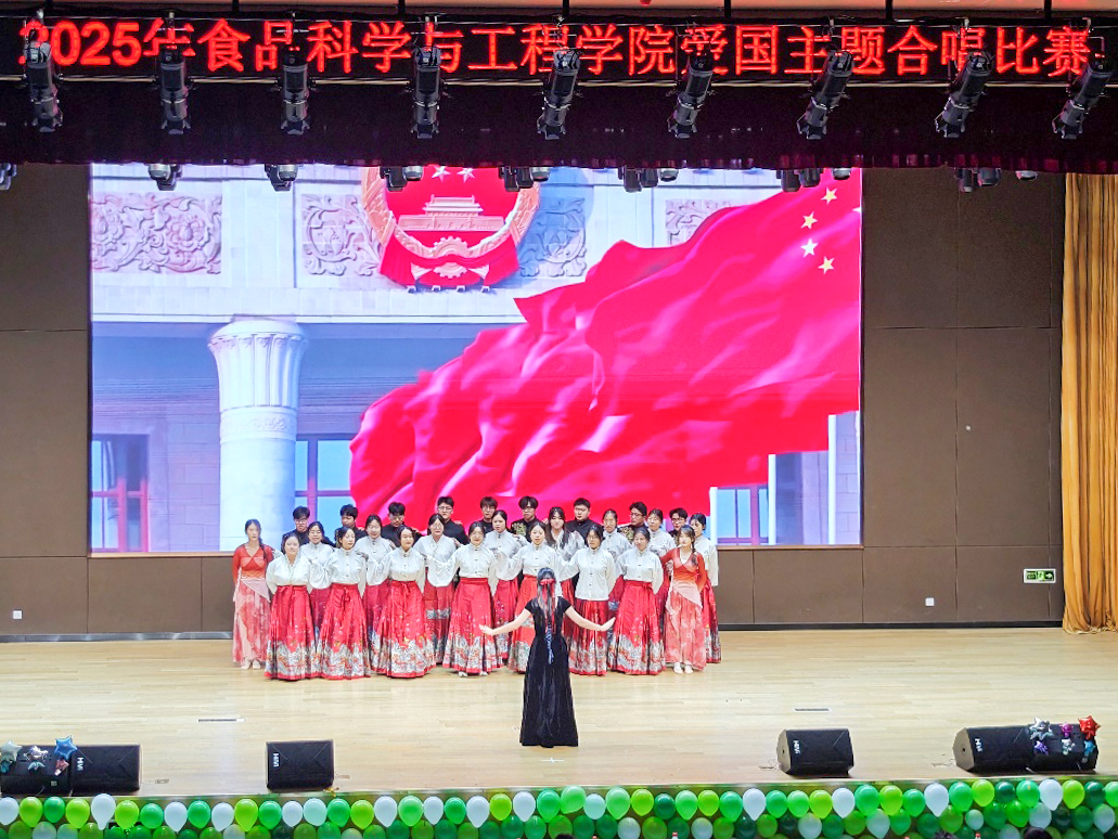 赛前,全体师生一同观看红色历史影像资料,重温革命岁月,在沉浸式的学习过程中唤醒红色记忆、凝聚爱国共识。比赛中,各参赛班级着装整齐、精神饱满,以铿锵嘹亮的歌声深情演绎经典红色曲目,展现出食品学子昂扬向上的精神风貌。比赛环节结束后,舞台剧《穿越时间的对话》精彩接续,学生们通过扮演革命先烈与新时代青年,在跨越时空的对话中生动再现烽火岁月的坚定信仰与时代担当。