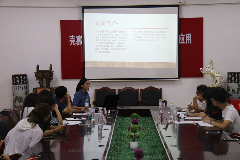 9月8日,beat365在线体育官网在食品楼310会议室举行2018暑期社会实践优秀团队评比会,共有来自学院2016、2017级的11支社会实践队伍参加了此次评比。学院党委副书记宋伟,团委书记李永青,辅导员赵莹、孙晓东、江巧宁,以及校学生会社会实践部唐晓敏、宋明强担任此次汇报会的评委。