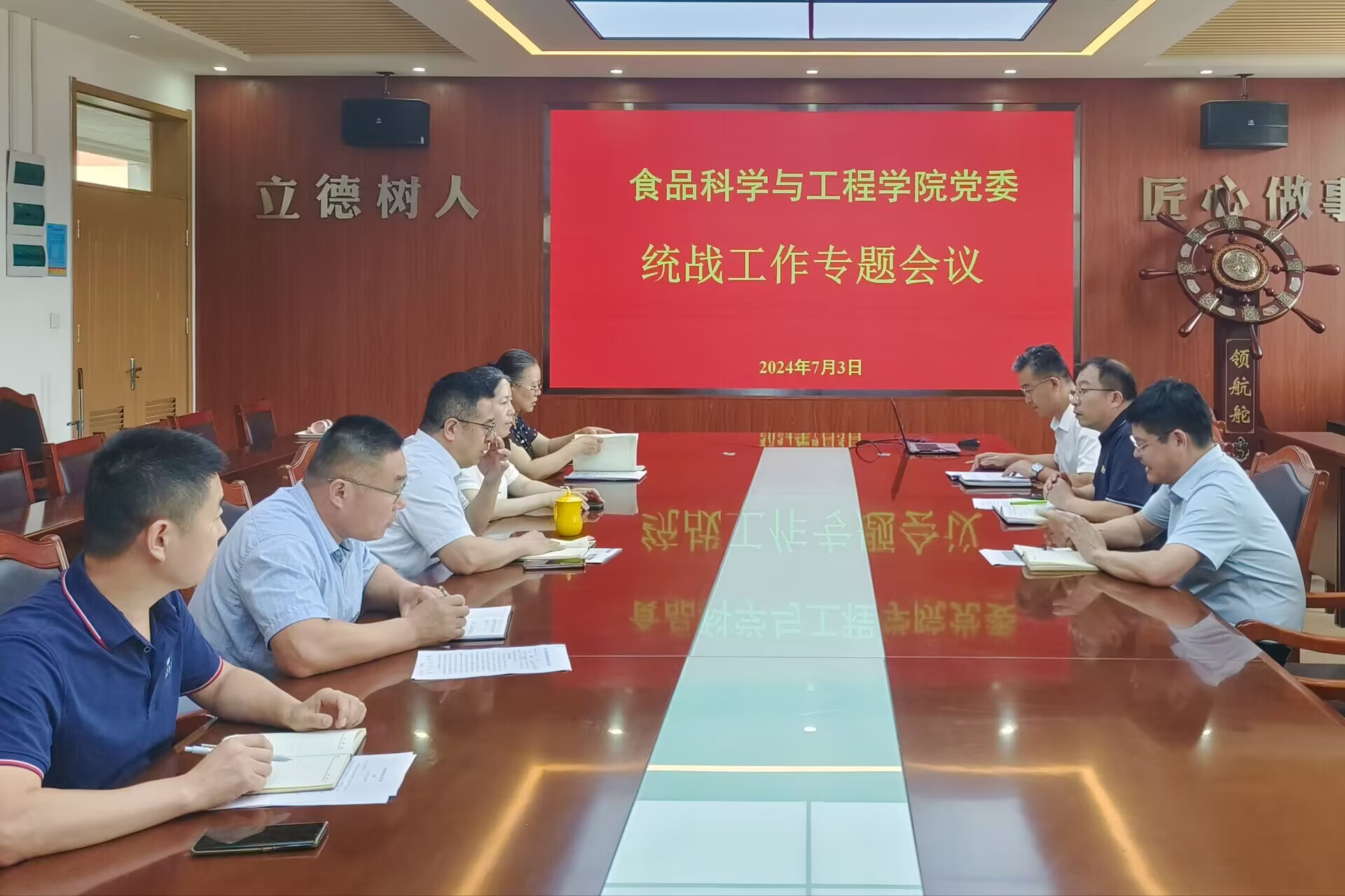 会上,车广杰领学了《中国共产党统一战线工作条例》,传达学习了全国统战部长会议精神。车广杰总结了学院2024年上半年统战工作情况,并对下半年的统战工作进行安排。
