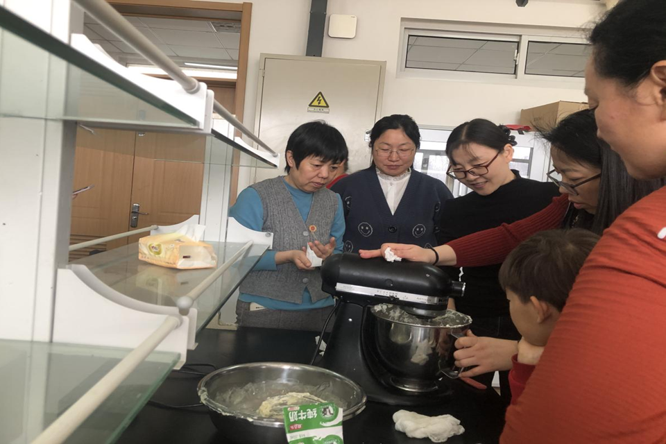在食品学院粮食工程系王燕斐副教授的指导下,烘焙DIY环节正式拉开帷幕。平日里执笔执教的双手在操作台前灵巧翻飞——称量配比、揉面塑形、创意装饰,女教职工们纷纷化身“烘焙达人”,全神贯注投入其中。大家一边切磋技艺,一边交流心得,欢声笑语与阵阵甜香交织弥漫。随着烤箱“叮”声陆续响起,形态各异的曲奇饼干、酥香可口的桃酥等作品相继出炉。看着自己亲手制作的劳动成果,大家脸上洋溢着满足与喜悦,在甜蜜的氤氲中度过了一段轻松惬意的美好时光。