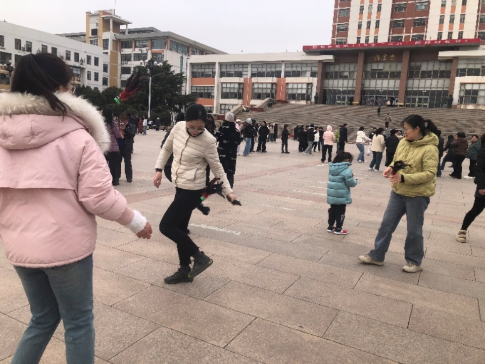 踢毽子比赛同样精彩绝伦。五彩的毽子在教师们的脚尖上下翻飞,她们灵活地变换着姿势,或单脚踢、或双脚交替踢,毽子仿佛被施了魔法一般,始终听从她们的指挥。比赛过程中,欢笑声、加油声此起彼伏,大家尽情享受着运动带来的快乐。