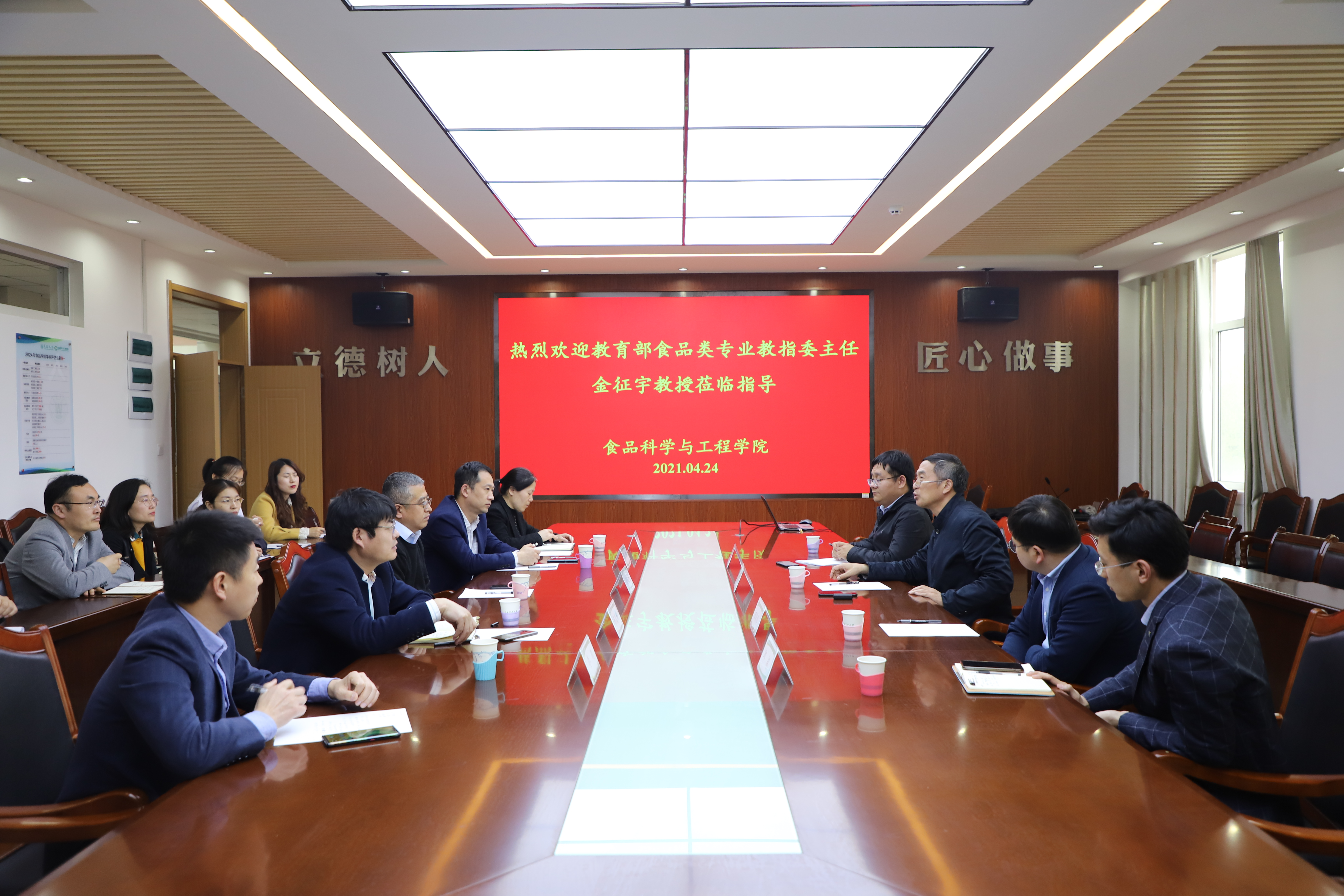 beat365在线体育官网党政领导班子成员同金征宇教授一行于食品楼开展专业建设交流会。交流会上,食品学院院长孙庆杰从特色专业建设、师资力量配备、科研成果进展等方面对学院进行了介绍,并指出学院积极开展食品精深加工研究、特种食品研究和健康食品开发,助力军民融合发展战略与健康中国战略,促进食品领域高新技术产业发展。