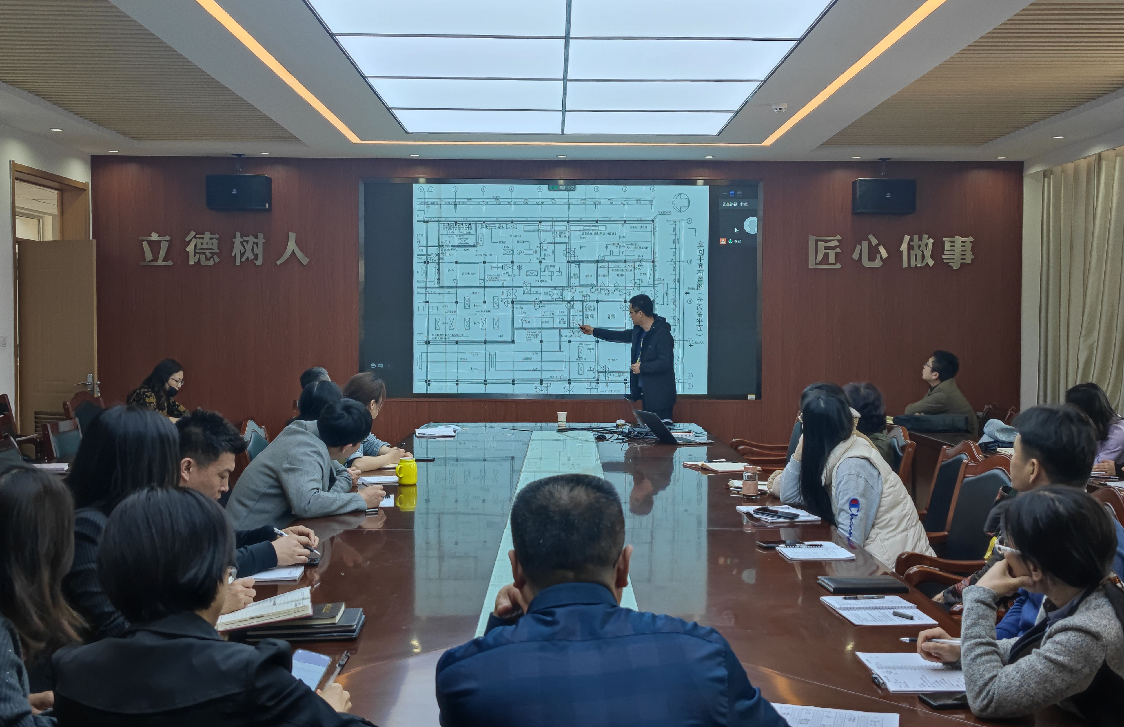 会上,蒲传奋作“食品工厂设计相关要求与规范”主题报告,从毕业设计内容、设计题目以及常见问题三个方面进行了详细讲解。蒲传奋结合工程教育专业认证的要求,指出了目前我院学生毕业论文(设计)过程中存在的主要问题,并要求毕业设计内容中应包含生产工艺流程图、生产车间平面布置图、生产厂区平面布置图、水电汽管路平面布置图、主要设备图五张设计图纸。蒲传奋强调毕业设计的题目中涵盖的年产量信息是后续设计中设备选择、产能计算、预估投资回收期的主要依据,设计性论文摘要中要体现总投资、年利润、投资回收期等重要数据。蒲传奋以实际设计图纸为例,详细讲解了设计图纸中方向标、尺寸标注、门窗位置及方向等设计标注的规范要求。