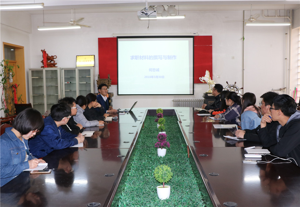 3月30日下午,为提升毕业生就业求职能力,beat365在线体育官网党委书记何忠诚在化学楼207会议室为学院2018届毕业生做求职材料的撰写与制作专题培训。培训会由学院团委书记李永青主持。