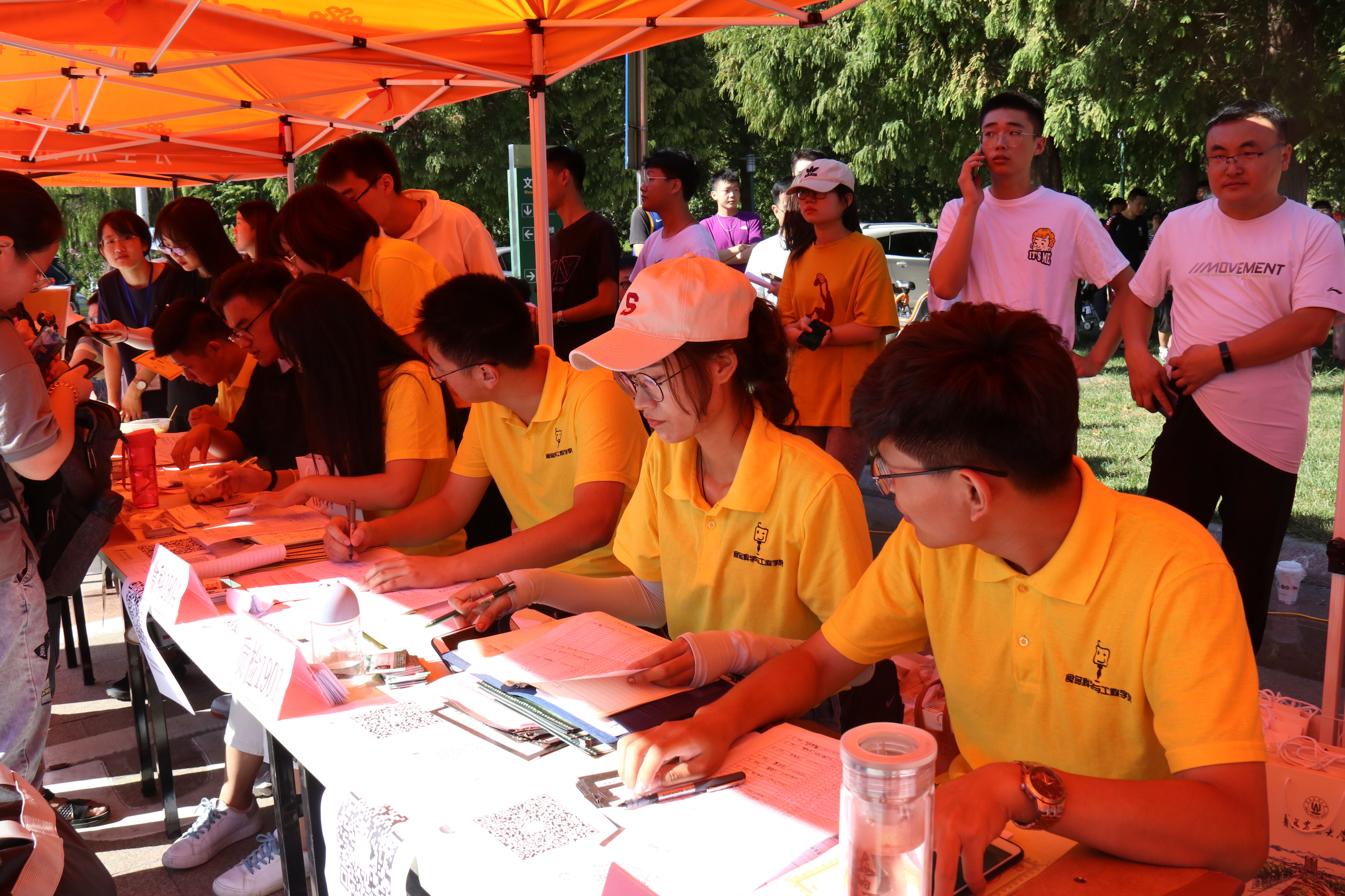 8月31日至9月1日,beat365在线体育官网于虹子广场迎接2019级入学新生。校党委书记李宝笃、校长宋希云、副校长刘新民、副校长单连岱、食品学院党委副书记宋伟来到学院迎新现场,指导工作。迎新现场大屏幕播放的学院简介、教授风采、新生入学须知等视频和2019届考研光荣榜等展板吸引了新生与家长驻足观看。现场,新生和家长还一同品尝了学院自制的曲奇、月饼、葡萄酒和啤酒。