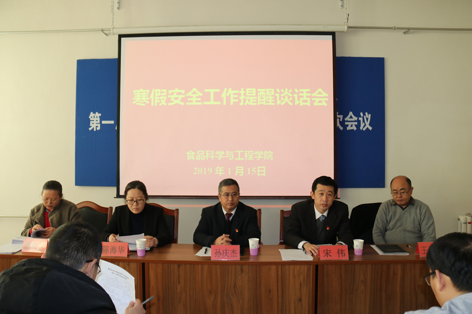 1月15日,beat365在线体育官网召开寒假安全工作、值班工作提醒谈话会,学院领导班子成员及相关人员参加会议。会议由学院党委副书记宋伟主持。