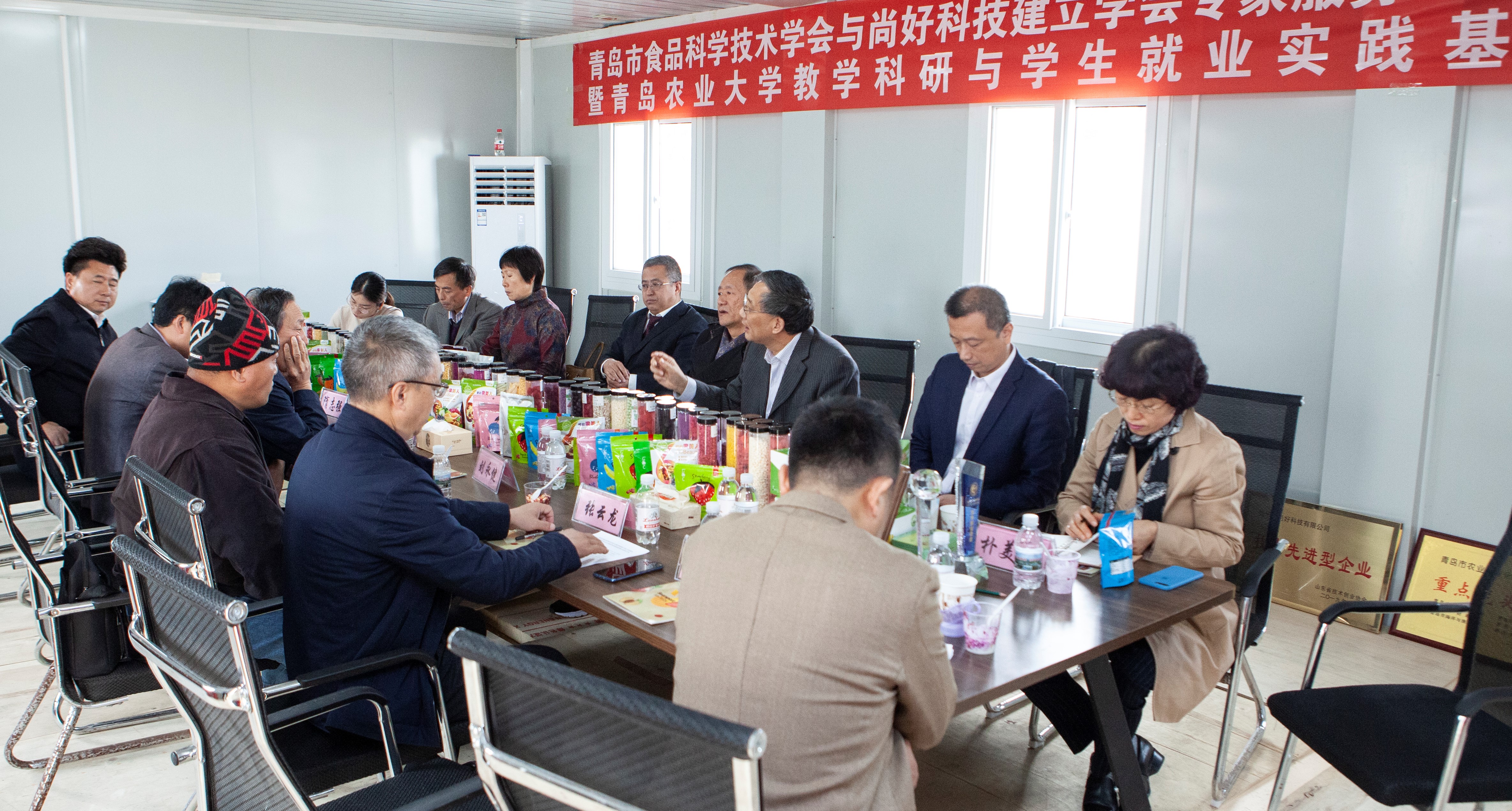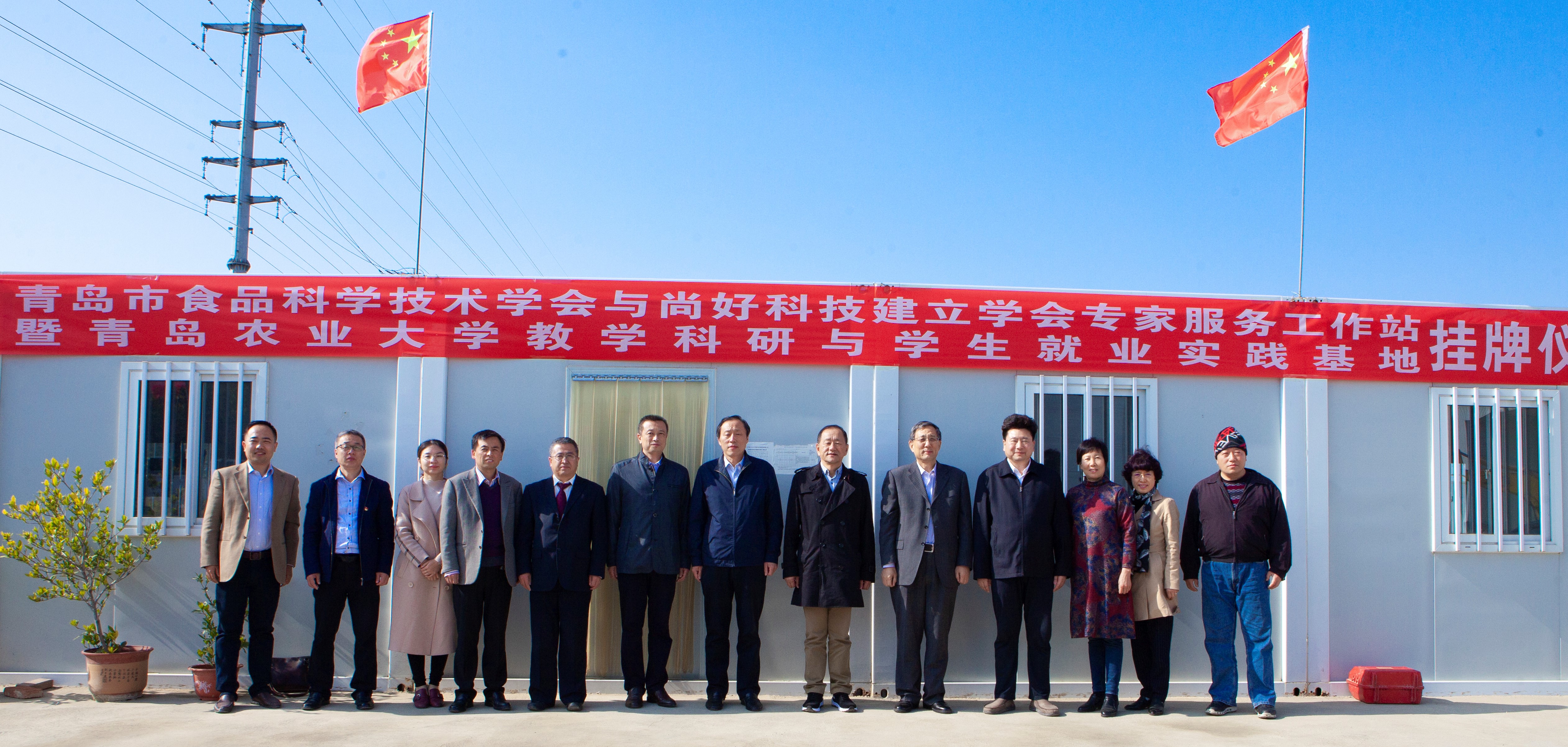 青岛市科学技术协会副主席、二级巡视员王军教授,青岛市食品科学技术学会理事长、食品学院教授王宝维,平度市政协王珂木副主席,尚好科技有限公司执行董事郁东兴,食品学院副院长孙庆杰教授共同为教学科研基地揭牌。