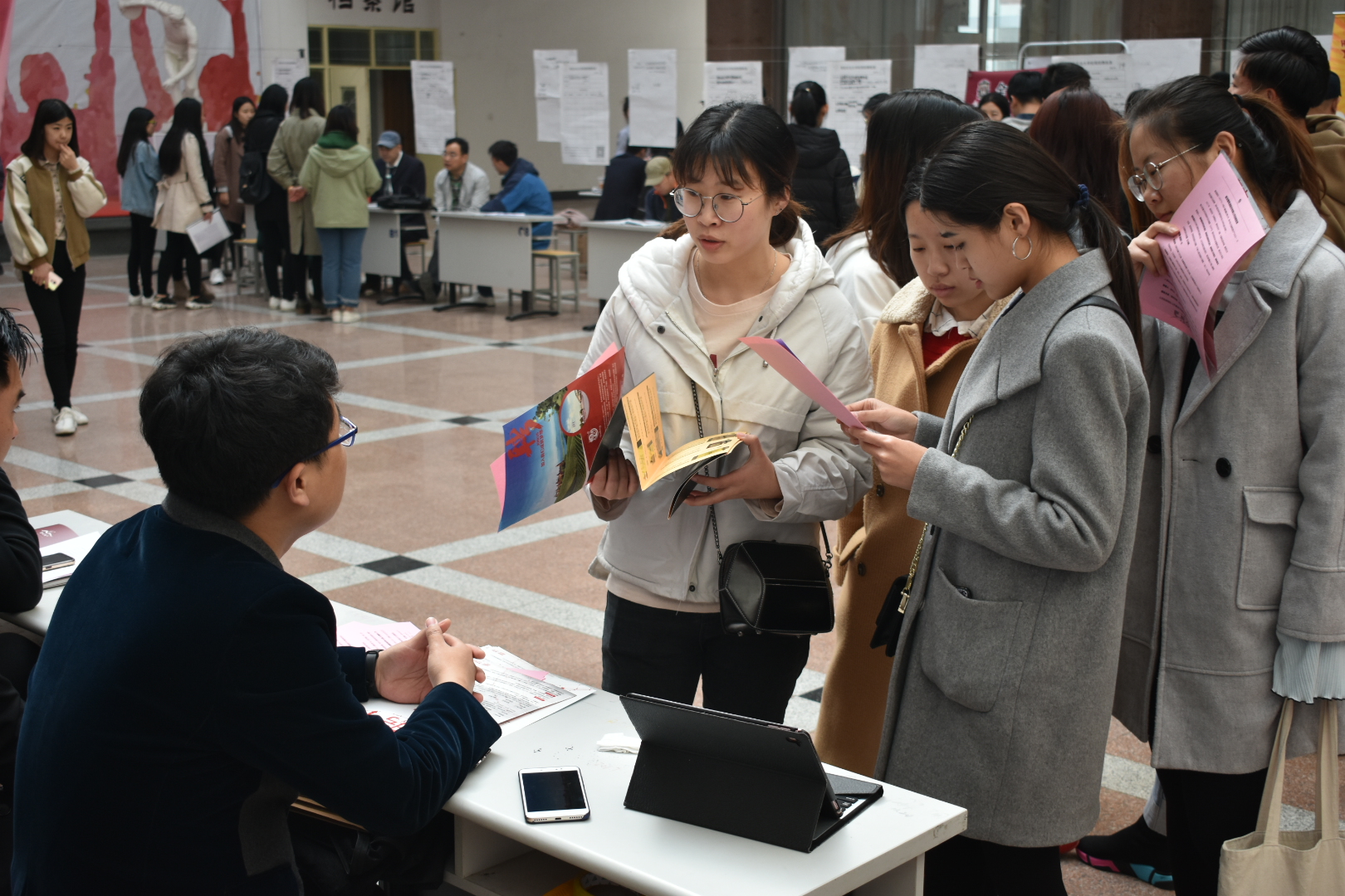 4月15日,beat365在线体育官网携手青岛市葡萄酒协会于文经楼大厅共同举办2018年葡萄酒企业专场招聘会。本次招聘会共吸引了来自省内外的32家葡萄酒企业参会,涵盖葡萄与葡萄酒工程、食品科学与工程、食品质量与安全、生物工程、市场营销、工商管理、机械、园艺、农学、植物保护等专业,提供就业岗位近90个,用人需求数量高达400余个。学院党委书记何忠诚、党委副书记宋伟、团委书记李永青、辅导员赵莹和部分教研室主任深入现场,与毕业生及企业负责人亲切交流。
