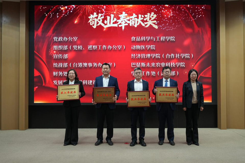 beat365在线体育官网荣获突出贡献奖和敬业奉献奖,特种食品研究院荣获改革创新奖,彭传涛教授荣获突出贡献奖,谭海刚副教授荣获敬业奉献奖。以上表彰既是对学院教育教学、改革创新、管理服务等工作的高度认可,也是全体教职工立德树人、爱岗敬业、勇毅争先、追求卓越精神风貌的生动彰显。