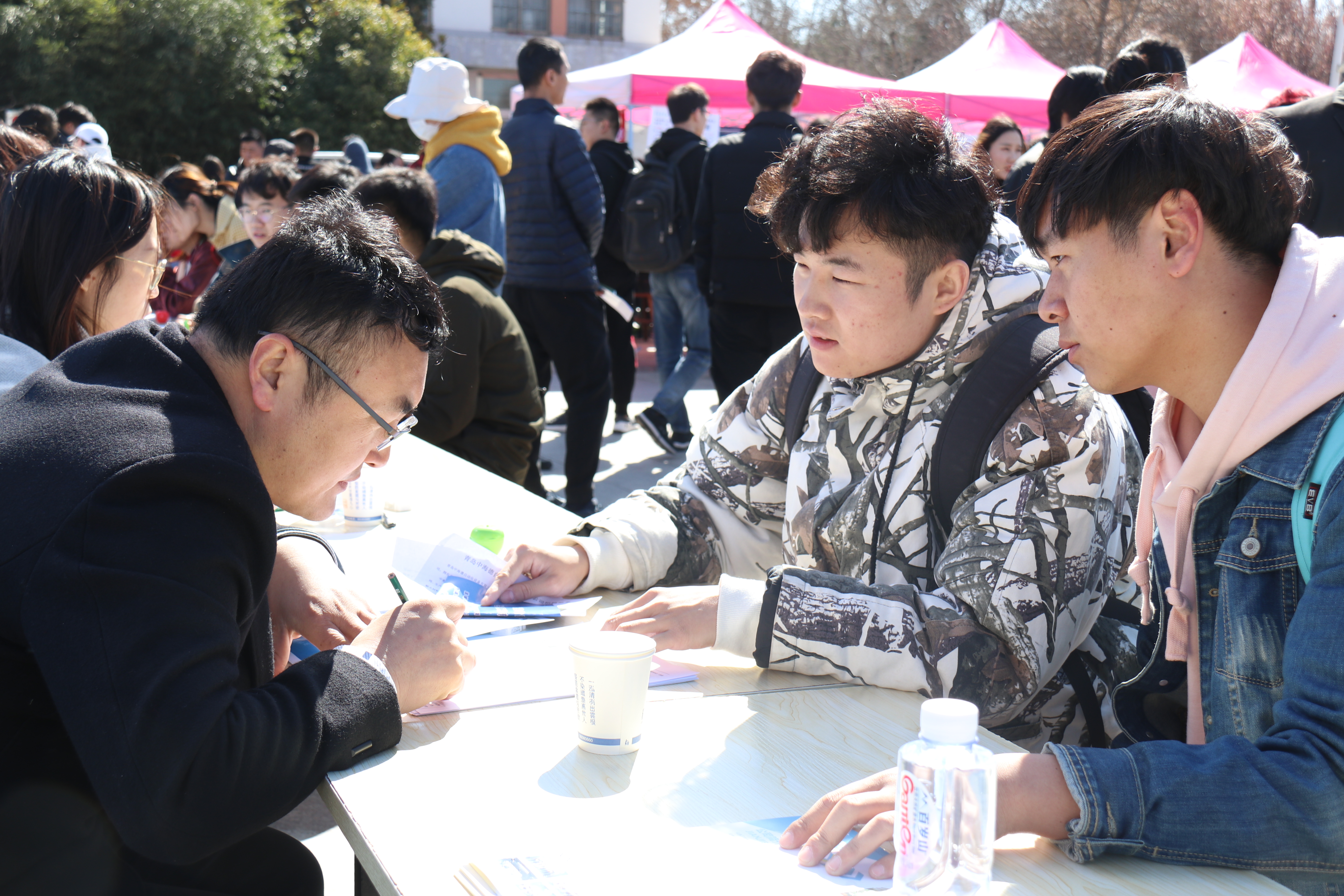 3月30日,青岛农业大学于虹子广场举办2019届毕业生春季供需见面会。见面会共有720家企业参与招聘,吸引了数千名毕业生前来求职。beat365在线体育官网团委书记李永青,辅导员赵莹、江巧宁走进招聘会现场,指导毕业生就业。