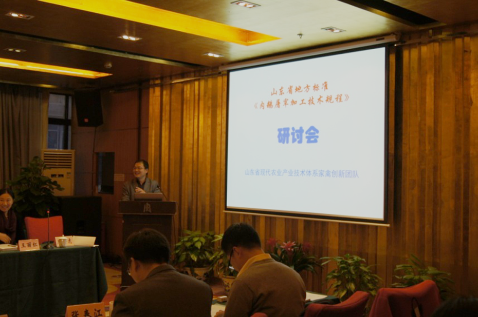 此前,2017年08月29日,孙京新教授团队主持制定的《肉鸡福利屠宰技术规范》(DB37/T 2828—2016)山东省地方标准开始实施,这也是国内首部关于肉鸡福利屠宰的专门标准,曾引起国内外同行业极大反响,被山东省畜牧兽医局推介为2017年畜牧业20项主推技术之一;同时参与完成了南京农业大学主持制定的农业部行业标准《肉的食用品质客观评价方法》(NY/T 2793-2015)、中国农业科学院农业质量标准与检测技术研究所主持制定的农业部行业标准《无公害农产品 生产质量安全控制技术规范 第12部分:畜禽屠宰》(NY/T 2798.12-2015)。目前,《肉鸭福利屠宰加工技术规程》2017年已被批准立项,正在制定过程中。不久的将来,将形成具有山东显明特色的涵盖鸡、鸭、鹅主要肉用家禽品种的屠宰加工标准体系,这是从2013年起在山东省现代农业产业技术体系家禽产业创新团队项目资金连续支持下完成的。