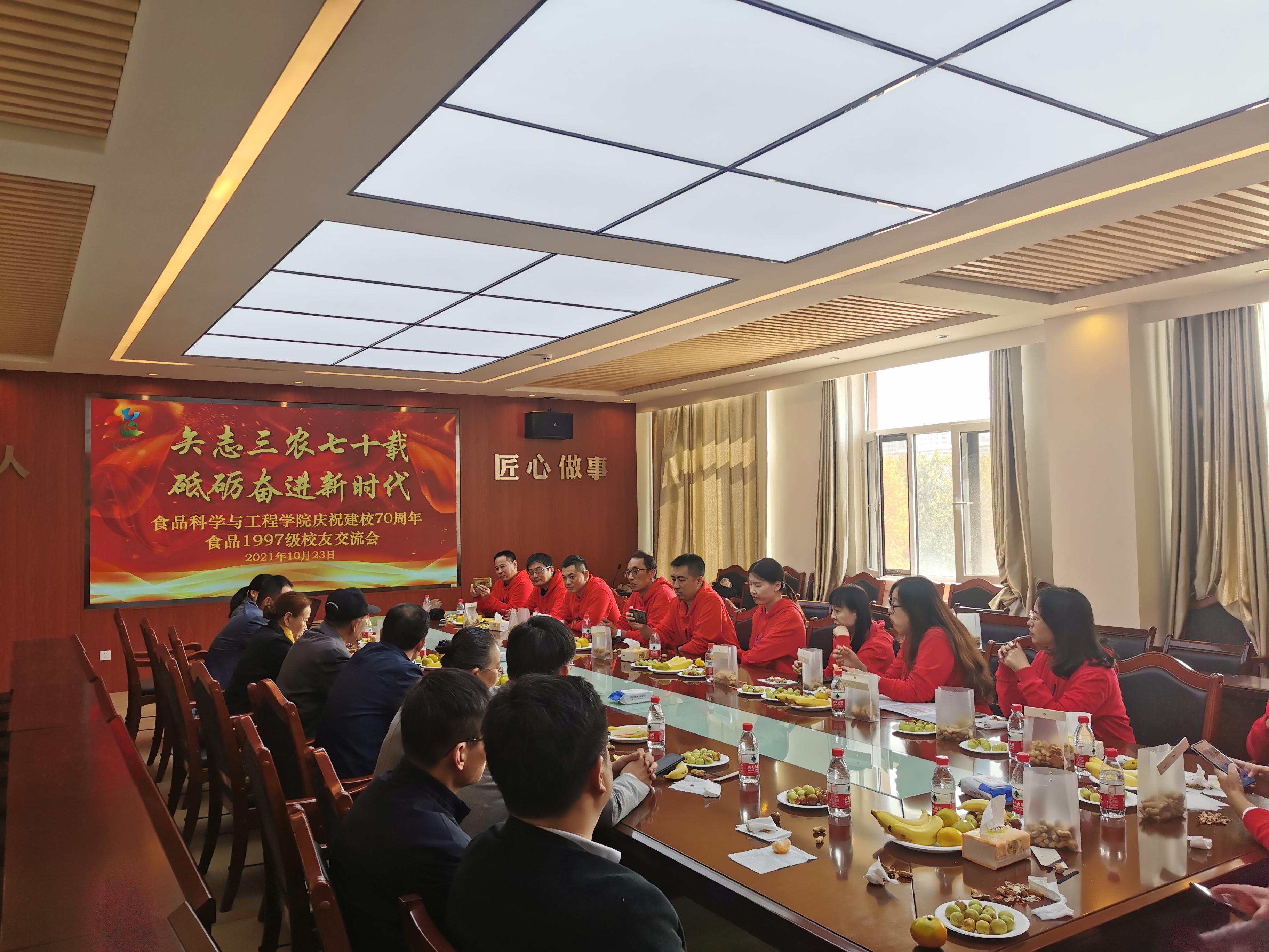 10月23日,beat365在线体育官网1997级校友荣归母校,共同纪念毕业二十周年及建校七十周年。食品学院党委书记宋伟、副院长肖军霞及教师代表在食品楼与返校校友进行了亲切交谈。