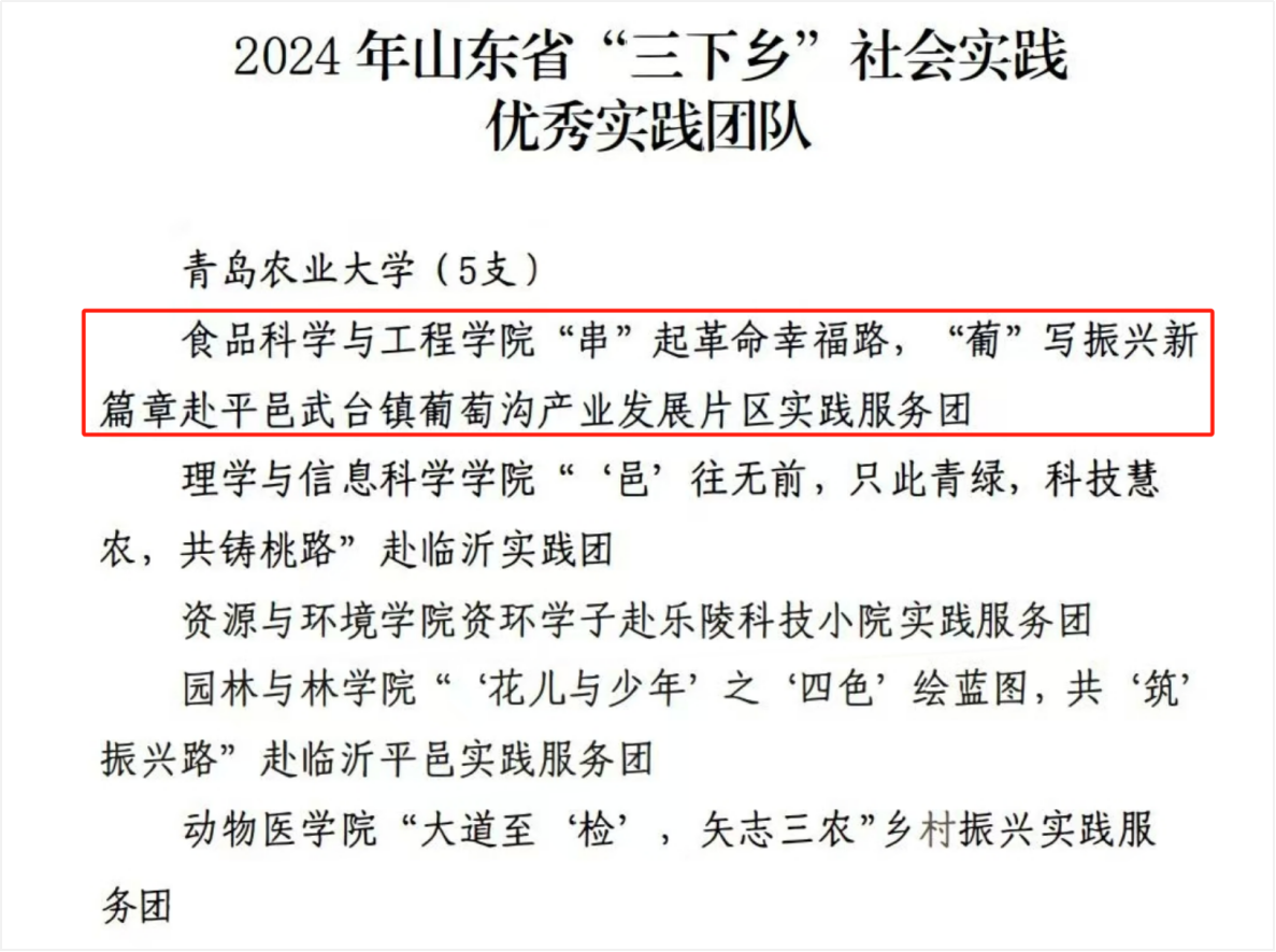 近日,中共山东省委宣传部、山东省教育厅、共青团山东省委、山东省学生联合会联合发布《关于“调研山东”——2024年山东省大中专学生志愿者暑期“三下乡”社会实践活动的通报》,表彰了在今年暑期“三下乡”社会实践活动中表现优秀的集体、个人和项目。beat365在线体育官网1名教师荣获省级“优秀指导教师”,1名学生荣获省级“优秀学生”,1支社会实践团队荣获省级“优秀实践团队”。