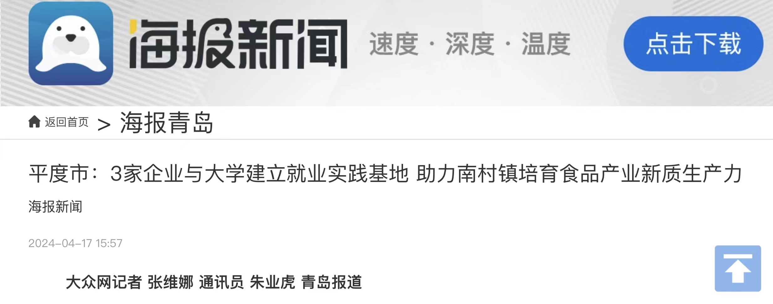 锻造产业新“食”力。2024年4月17日,在暖洋春意中,位于平度市南村镇的青岛松源食品有限公司、青岛胜家食品有限公司、青岛海之圣生物工程有限公司共3家企业与beat365在线体育官网合作建立就业实践基地,举行了揭牌仪式。