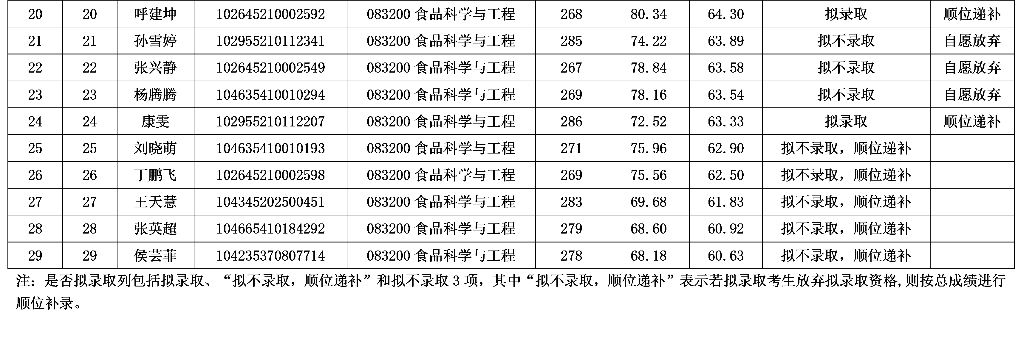 2025年食品学院硕士研究生调剂复试录取名单