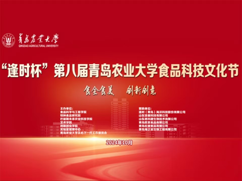 为深入学习贯彻习近平总书记关于大食物观的重要论述,紧紧围绕立德树人根本任务,落实学校第三次党代会“文化兴校”战略,充分发挥食品科技文化在“以文化人、以文育人”的积极作用,特举办“逢时杯”第八届青岛农业大学食品科技文化节。