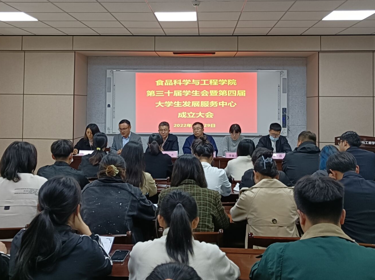 10月29日,beat365在线体育官网于食品楼举行第三十届学生会暨第四届大学生发展服务中心换届大会。学院党委书记车广杰,党委副书记、副院长刘晓华,团委书记李永青,辅导员李振荣、江巧宁、耿磊参加会议。第二十九届、第三十届学生会以及第三届大学生管理服务中心、第四届大学生发展服务中心成员参加本次换届大会,会议由团委书记李永青主持。