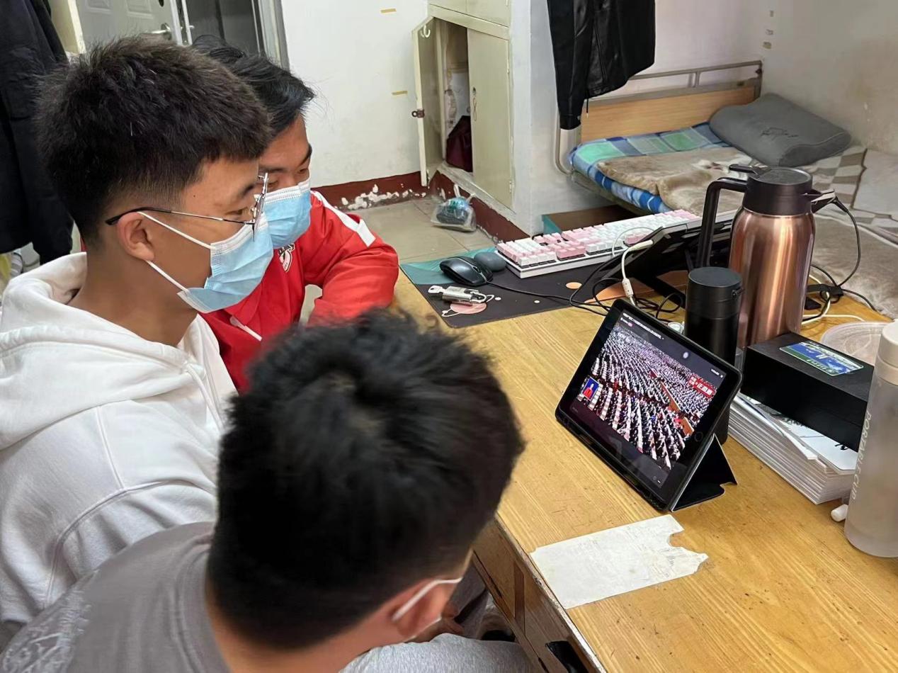 学院党委理论学习中心组成员、各党支部负责人、辅导员以及教师、学生党员代表在学院会议室集中收看开幕式盛况