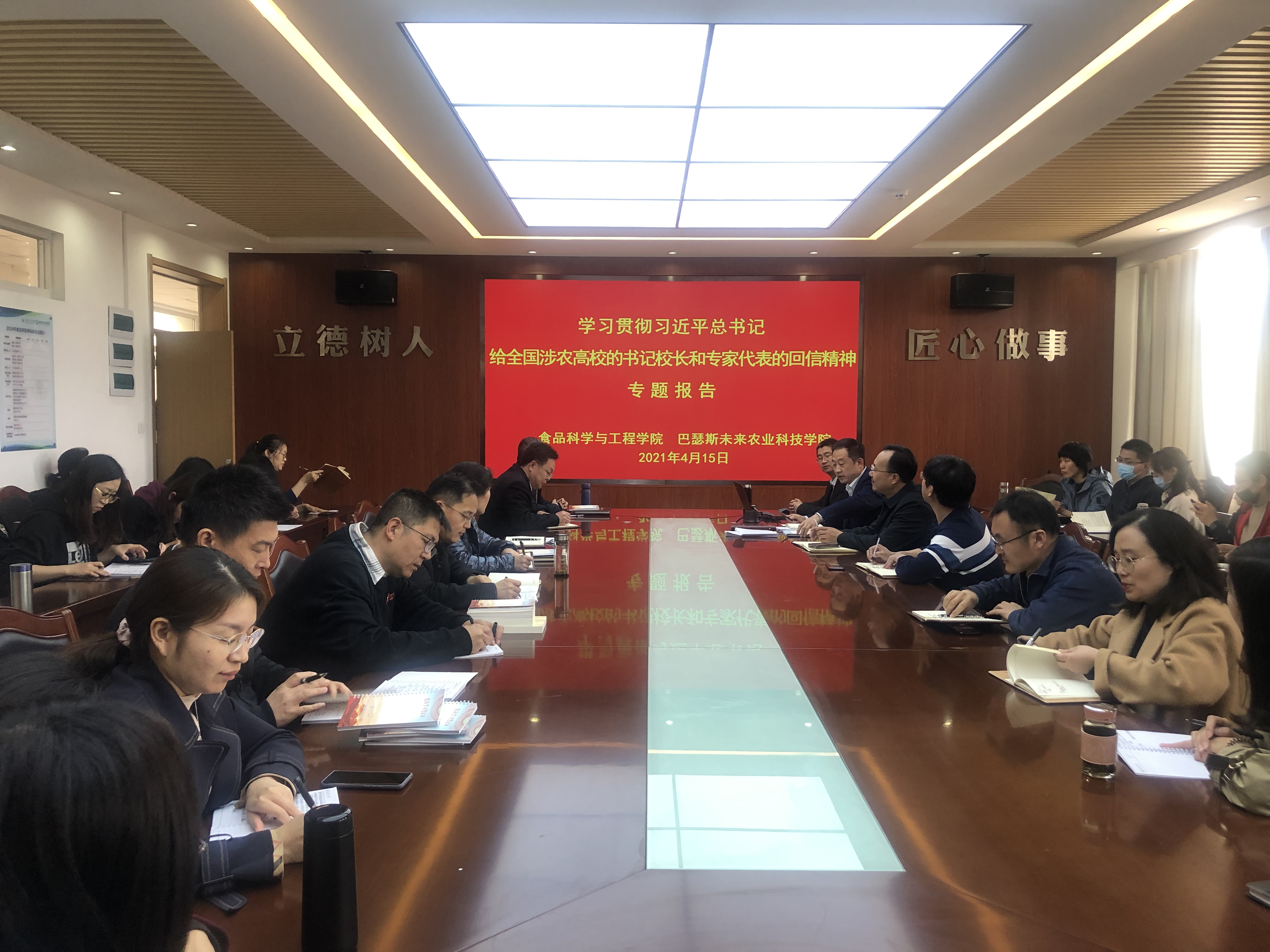 4月15日,beat365在线体育官网与巴瑟斯未来农业科技学院在食品楼会议室共同举办学习贯彻习近平总书记给全国涉农高校的书记校长和专家代表的回信精神专题报告,邀请马克思主义学院副教授刘如飞作为主讲人。食品学院全体教职工、巴瑟斯未来农业科技学院全体教师参加,报告由食品学院党委书记宋伟主持。