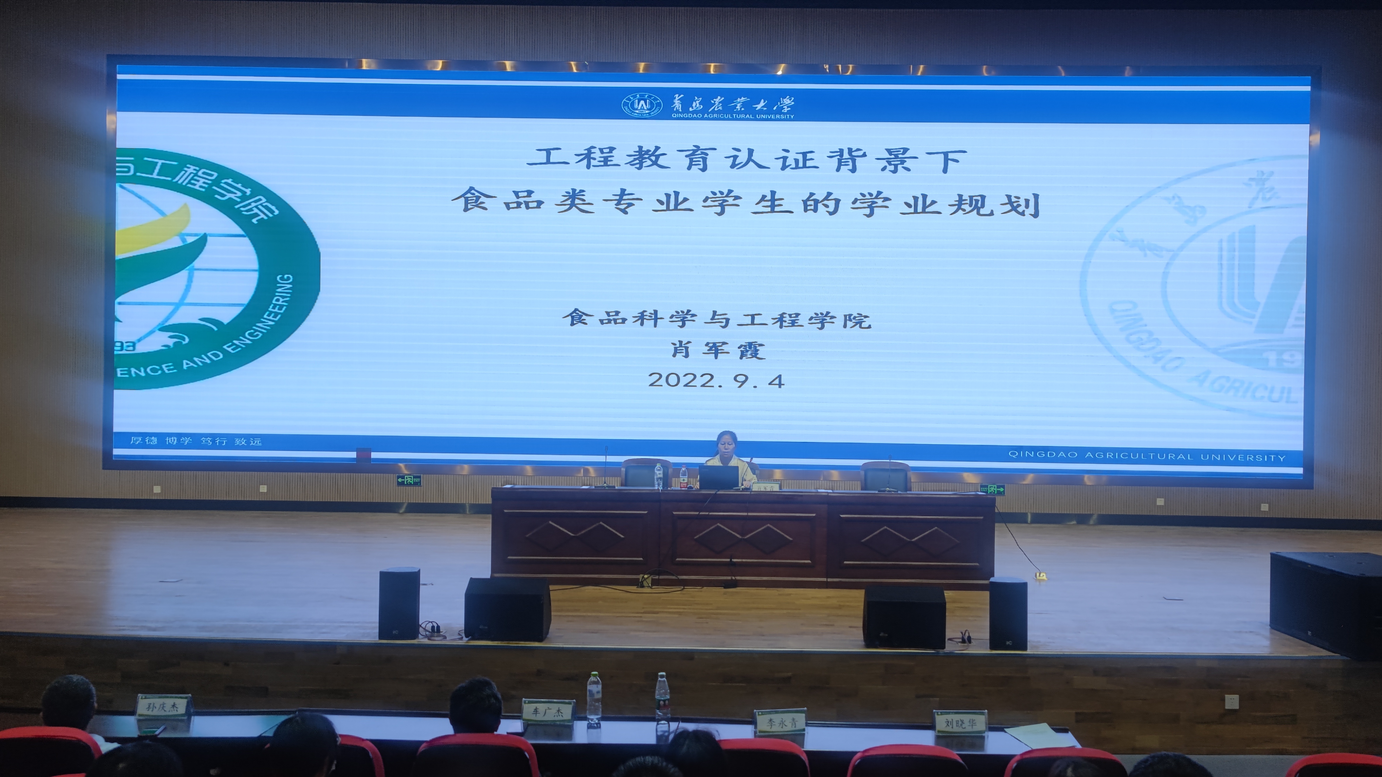 刘晓华和肖军霞分别做了《读懂过好我们的大学》《工程教育认证背景下食品类专业学生的学业规划》主题报告,从食品类专业学习视角,结合工程教育背景,引导新生坚定理想信念,树立奋斗目标,合理规划大学生活。
