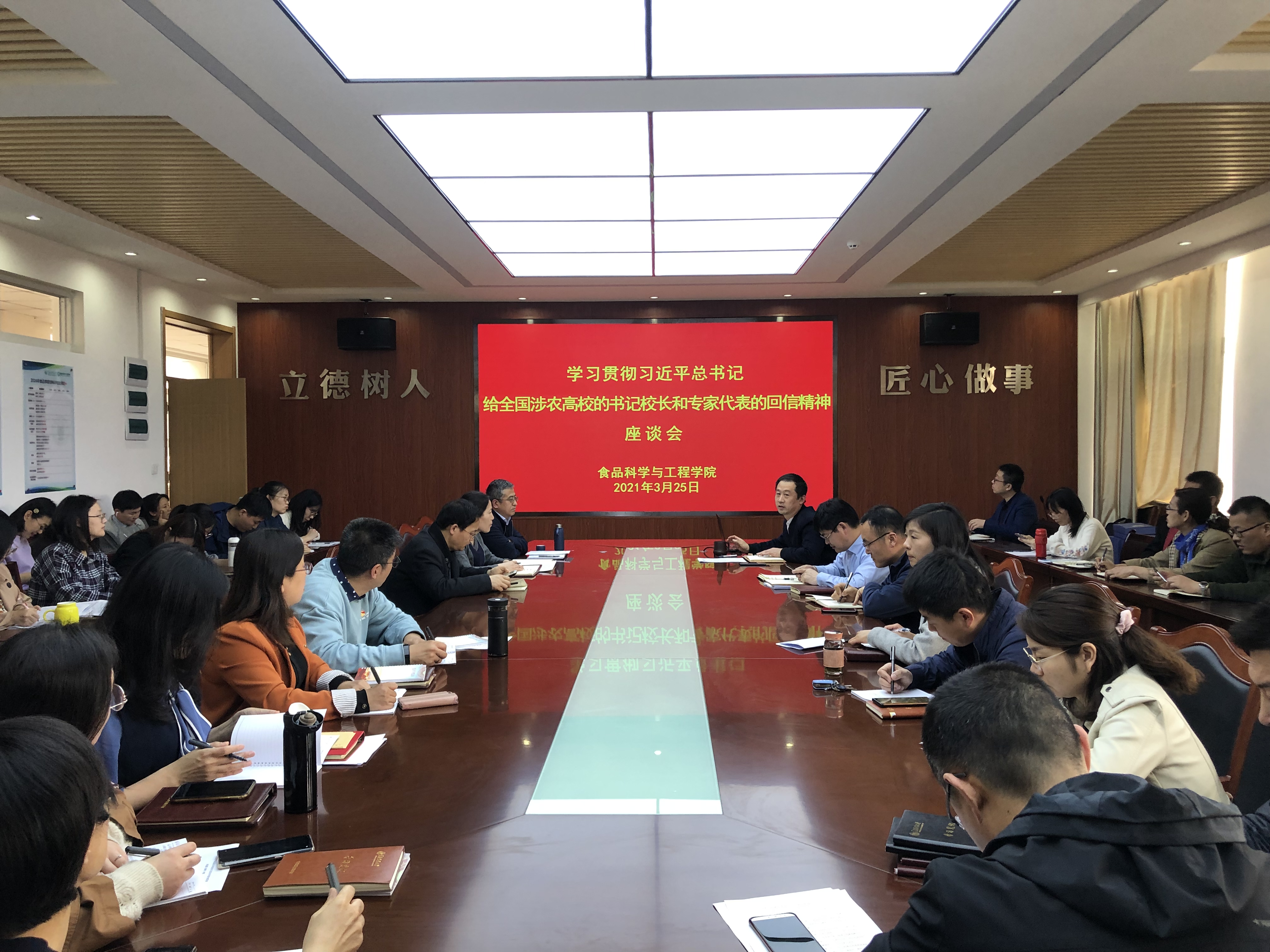 3月25日,beat365在线体育官网在食品楼会议室举行学习贯彻《习近平总书记给全国涉农高校的书记校长和专家代表的回信》精神座谈会。学院党政领导班子成员和全体教职工参加会议。会议由学院党委书记宋伟主持。