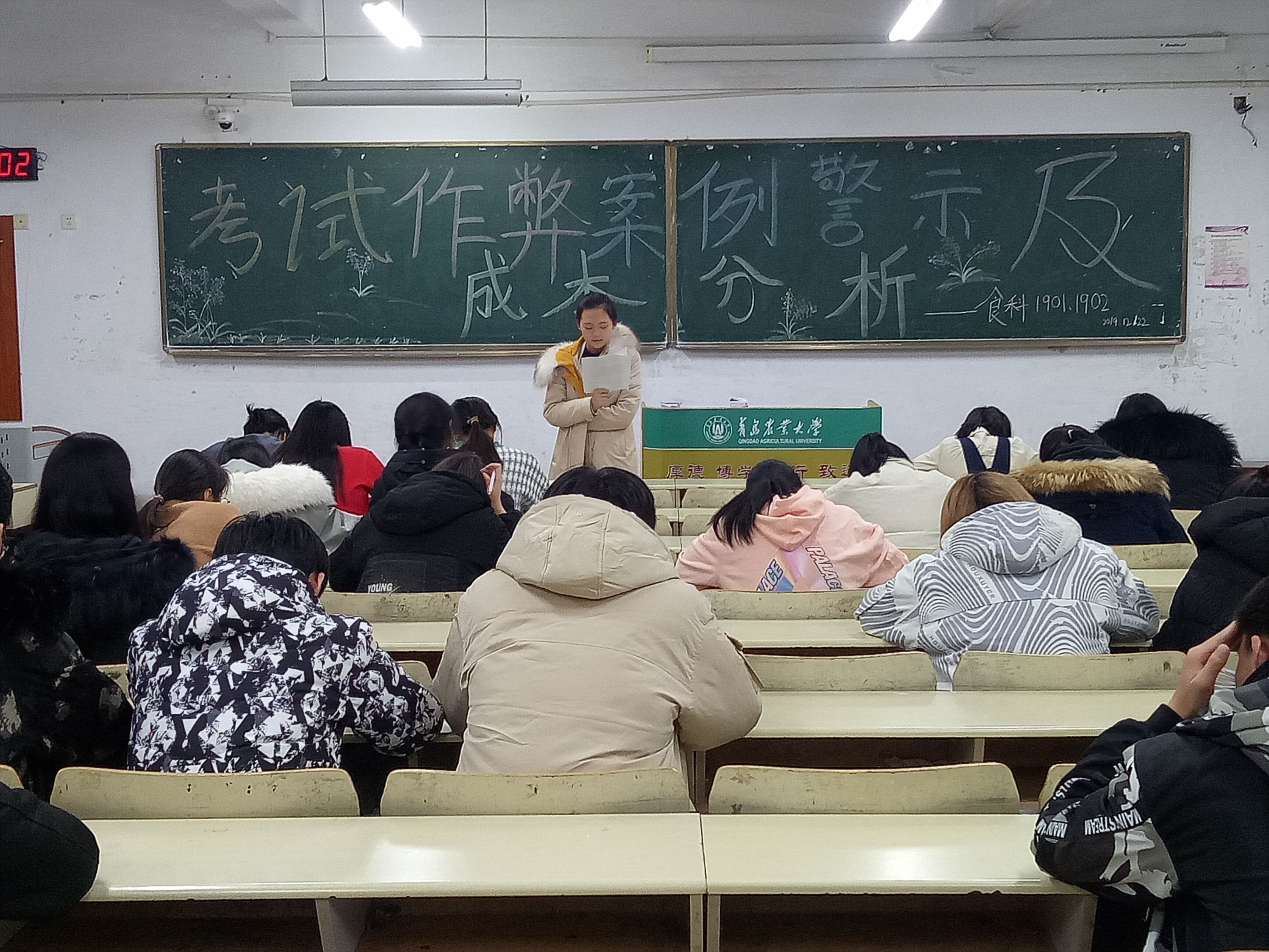 12月22日,beat365在线体育官网于教学区开展“考试违纪及作弊相关知识”主题政治学习。2018级、2019级全体学生参加。