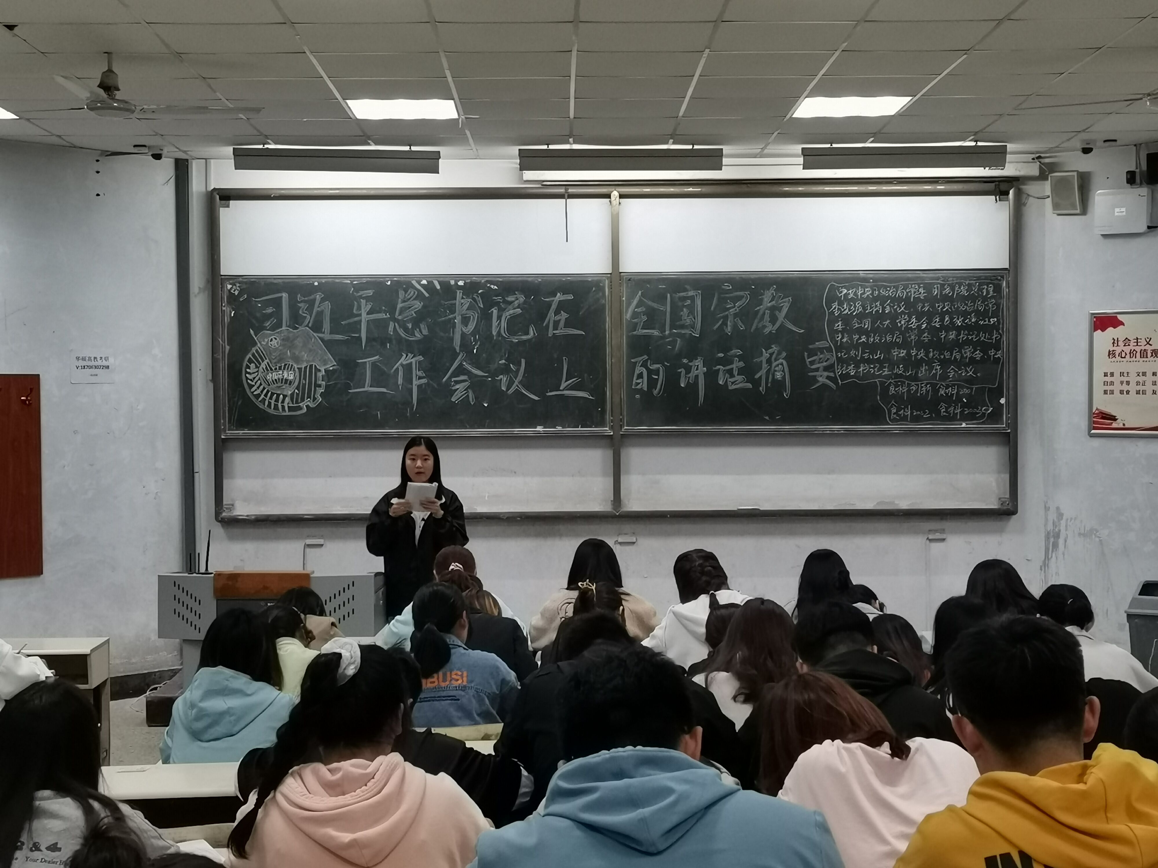 本次政治学习加强了树立大学生科学世界观的宣传教育工作,在提高同学们对宗教工作思想认识的同时,还弘扬了中华民族优良传统,阐释了中华优秀传统文化。