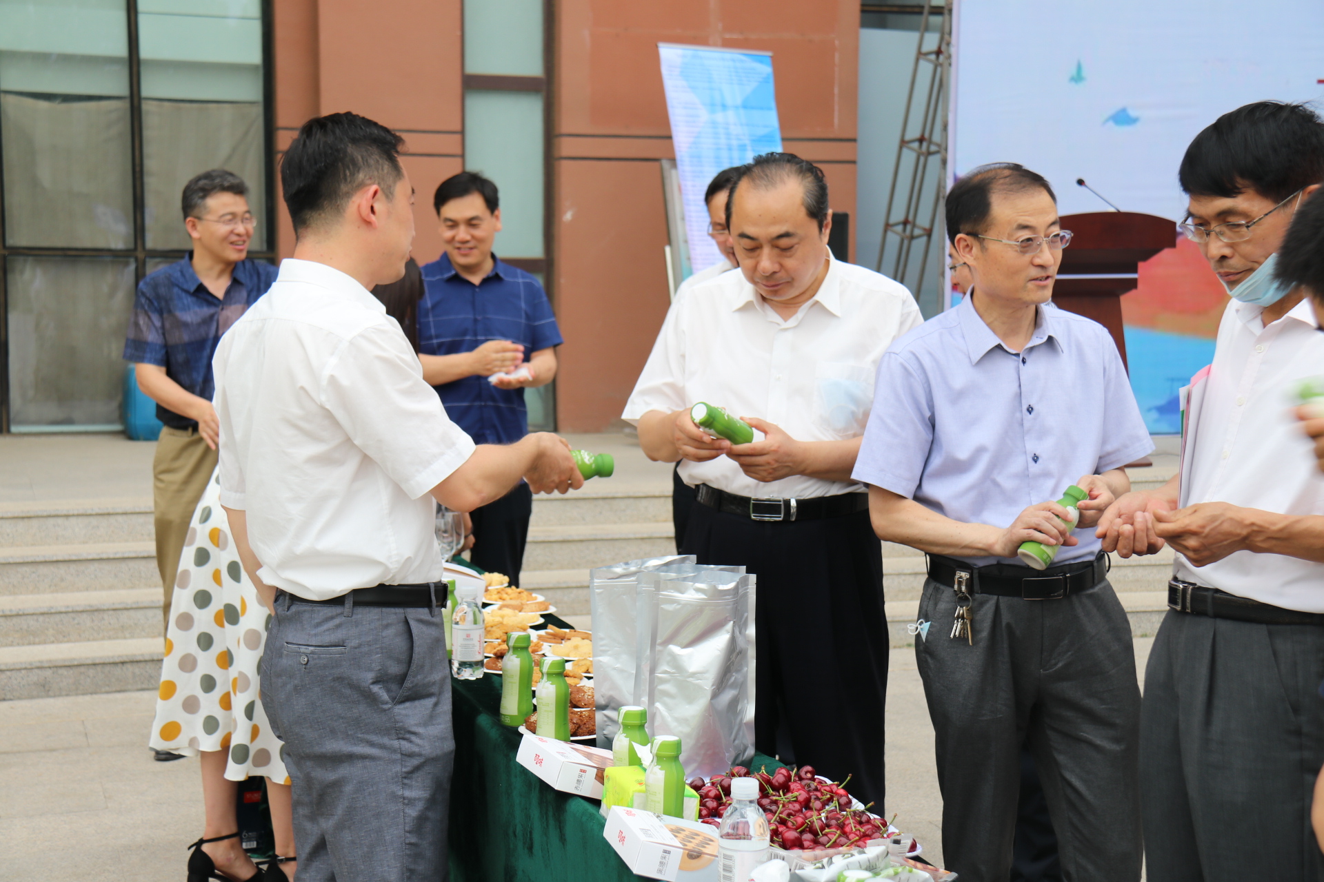 后勤服务产业集团总经理姜吉强宣读活动方案。青岛众创味来科技有限公司总经理、食品学院2007级校友钱龙,学校博爱餐厅经理孙秀华,学院教师代表吴薇,学生代表于成慧分别做了发言。开幕式后,与会人员品尝了饼干、酸奶和葡萄酒等大学生实训产品。