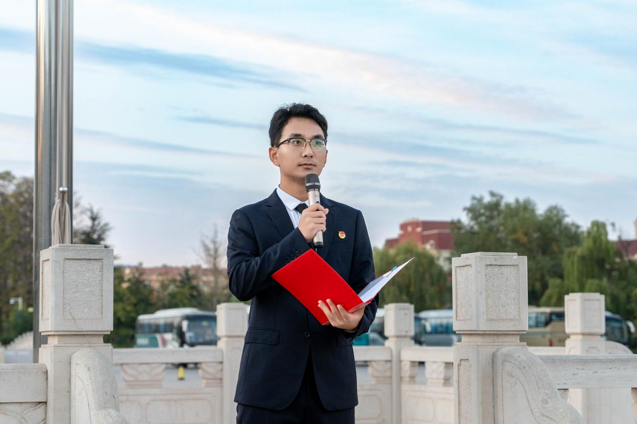 食品质量与安全2202班李文哲、食品科学与工程2401班黄金峰以《青春为中国式现代化挺膺担当》为主题做国旗下演讲,号召同学们要以坚定的理想信念、扎实的学识本领、高尚的品德修养挺膺担当。青春是国家的未来,青年一代有理想、有担当,国家就有希望,民族就有未来。全体同学要积极响应时代号召,将个人梦想融入中国式现代化的伟大实践中,增强责任感和使命感,坚定理想信念,勇于担当敢作为,以青春之我、奋斗之我为中国式现代化挺膺担当,在实现中华民族伟大复兴中国梦的生动实践中放飞青春梦想,在为人民利益的不懈奋斗中书写光彩夺目的人生华章!