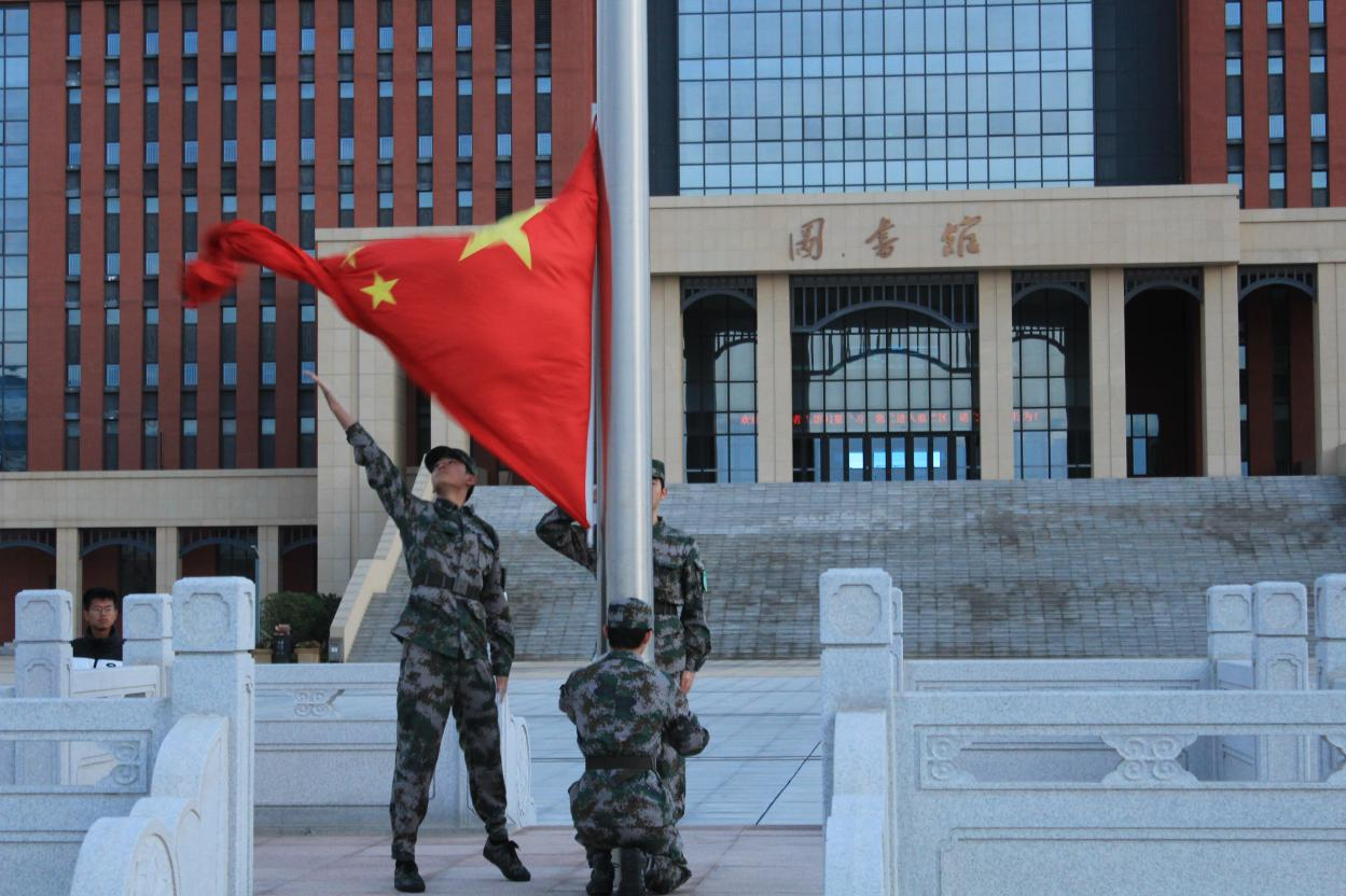 11月4日,beat365在线体育官网于城阳校区虹子广场和平度校区图书馆前广场同时举行升旗仪式。学工办辅导员、各年级全体同学参加升旗仪式。