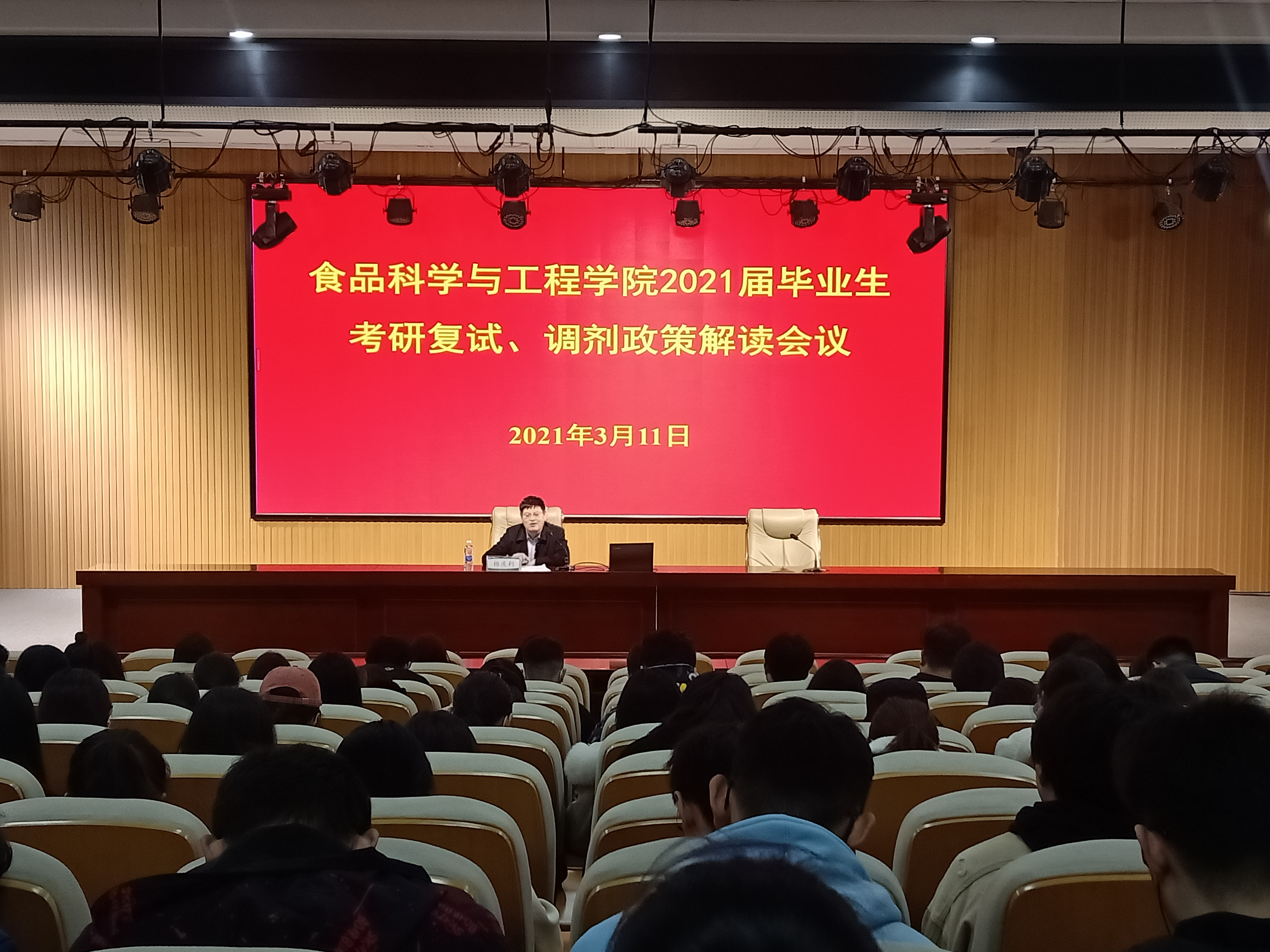 3月11日,beat365在线体育官网在学术会馆第二报告厅召开2021届毕业生考研复试、调剂政策及就业政策解读会议。学院2017级全体学生参加。会议由学院党委委员、团委书记李永青主持。