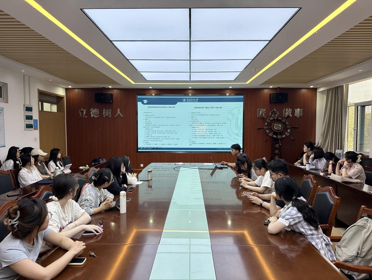 会上,5名同学结合自身情况,分别就目标院校的选择、考研复习方法、备考时间规划三个方面进行了详细的讲解。其中,被江南大学拟录取的苏杭同学重点分享了专业课学习的经验和计划,她谈到每天至少需要抽出半天的时间来掌握基础知识点,并建议大家积极参加学术竞赛活动,以考代练,以考促学,为专业课的复习打下坚实基础。被南京农业大学拟录取的田原风同学详细讲解了各科目在不同时间阶段的复习方法与技巧,并推荐了复习书籍和网课资料。被华中农业大学拟录取的许浩田同学建议同学们择校时切忌好高骛远,一定要结合自身实际,尽早制定适合自己的复习计划,明确自己的考研目标,并分享了自己报考时的一些注意事项。