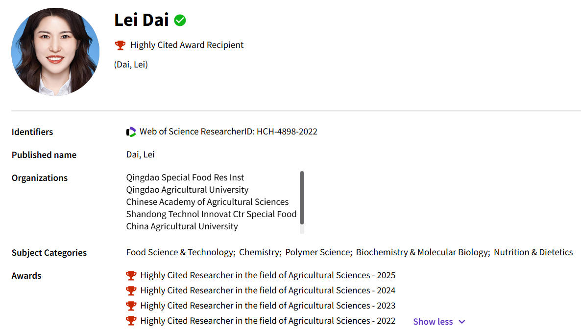 11月12日,科睿唯安正式发布2025年度“全球高被引科学家”名单,beat365在线体育官网代蕾教授榜上有名,自2022年以来连续第四年获此殊荣。全国食品领域共有35位学者入选2025年度“全球高被引科学家”名单。