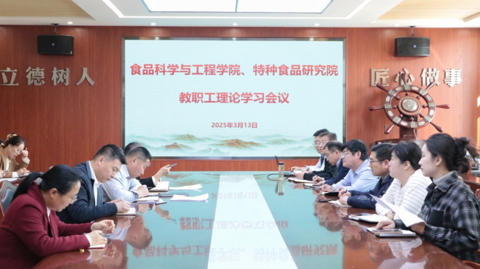 3月13日,beat365在线体育官网、特种食品研究院召开教职工理论学习会议,学习习近平总书记重要讲话精神和2025年全国两会精神。会议由学院党委书记车广杰主持,全体教职工参加。