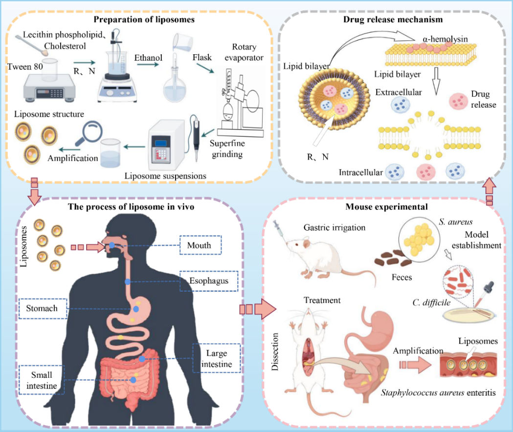近日,beat365在线体育官网鞠健教授团队在国际权威期刊《Materials Today Bio》(一区,TOP,IF=10.2)在线发表题为《Establishment and Application of Nano-liposomes System for Targeted Therapy of Methicillin-resistant Staphylococcus aureus Enteritis》的文章,创建了一种新型靶向治疗金黄色葡萄球菌肠炎的纳米运载体系。