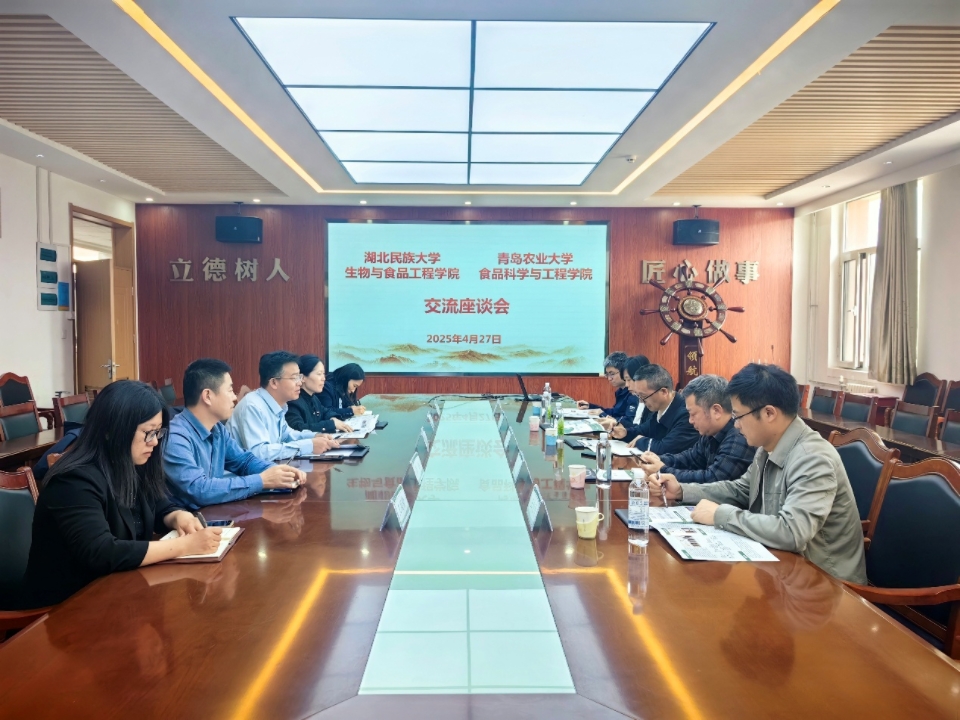 4月27日,湖北民族大学生物与食品工程学院党总支书记周志、副院长罗凯一行来学院访问。学院党委书记车广杰、副院长肖军霞等与来访客人进行座谈,座谈会由车广杰主持。