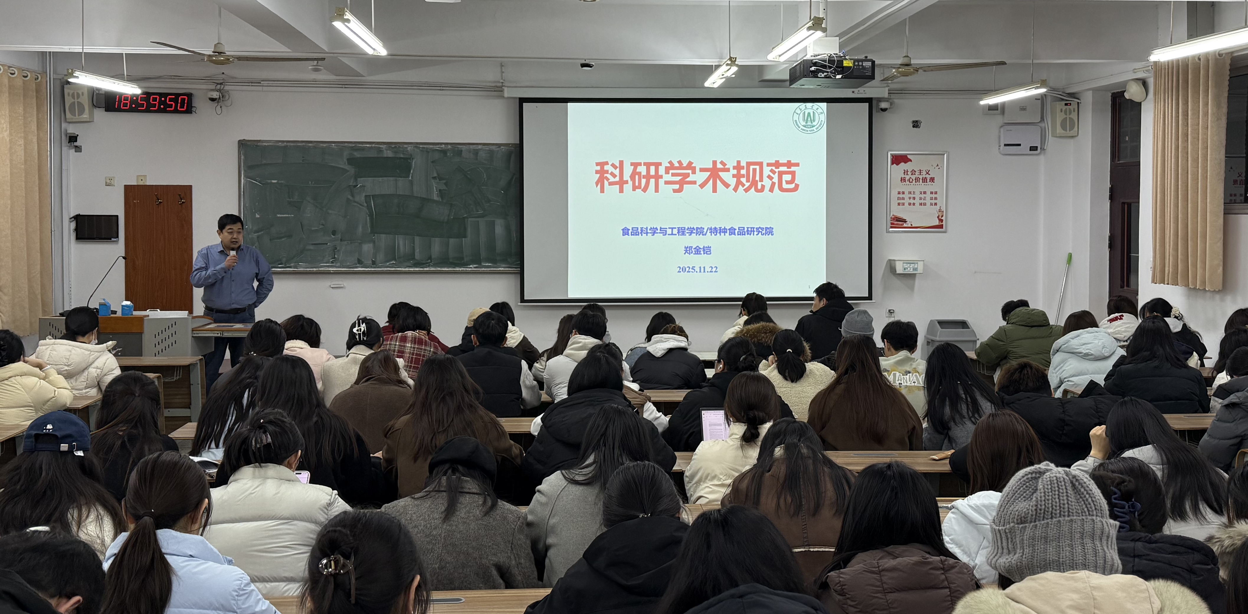 11月22日,beat365在线体育官网举行第四期研究生科研素质培训,院长郑金铠教授围绕《科研学术规范》为2025级研究生做专题讲座。