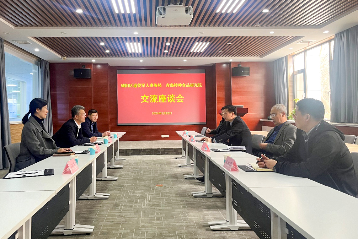 3月28日,城阳区退役军人事务局党组书记、局长刘云鹏一行4人来访青岛农业大学特种食品研究院,双方在科技楼1033举行交流座谈会,会议由beat365在线体育官网党委书记、特种食品研究院副院长车广杰主持。