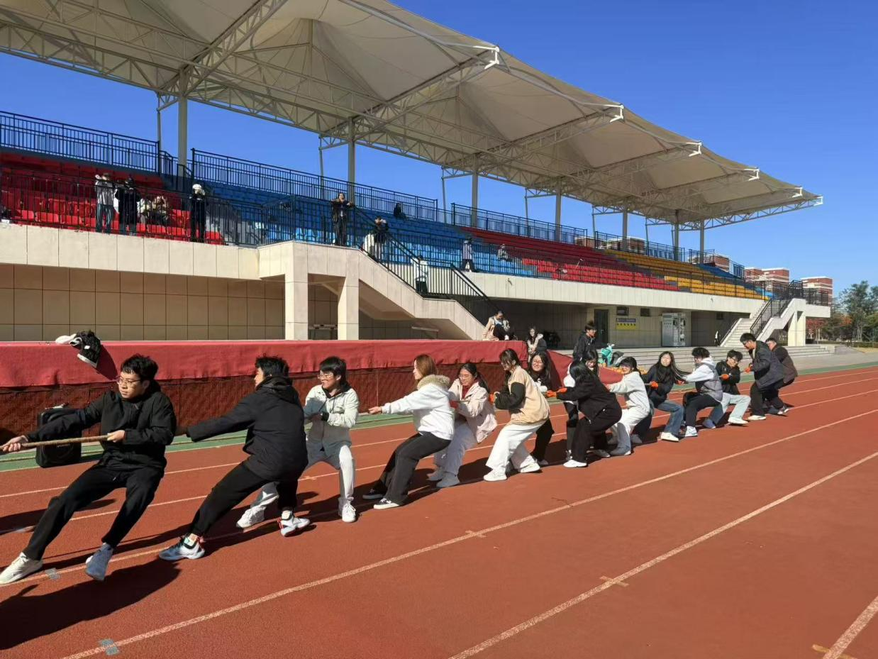 10月25日,beat365在线体育官网2025级新生拔河比赛在平度校区朝阳体育场举行。活动以“凝心聚力,‘绳’采飞扬”为主题,9个新生班级代表队同台竞技,增进班级交流。