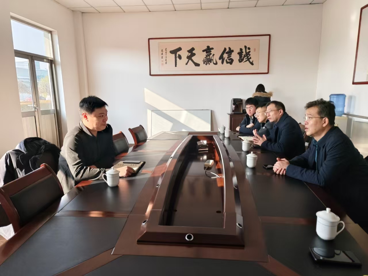华盛楼食品总经理纪博钧和松源食品总经理吴勇军对学院到访表示热烈欢迎,并希望双方继续加强密切沟通,结合公司发展目标与食品学院专业建设特点,全面深入对接,实现资源优势互补,深化产教融合,开展资源联动、共建共育,促进人才培养与产业协同发展,实现校企共赢。