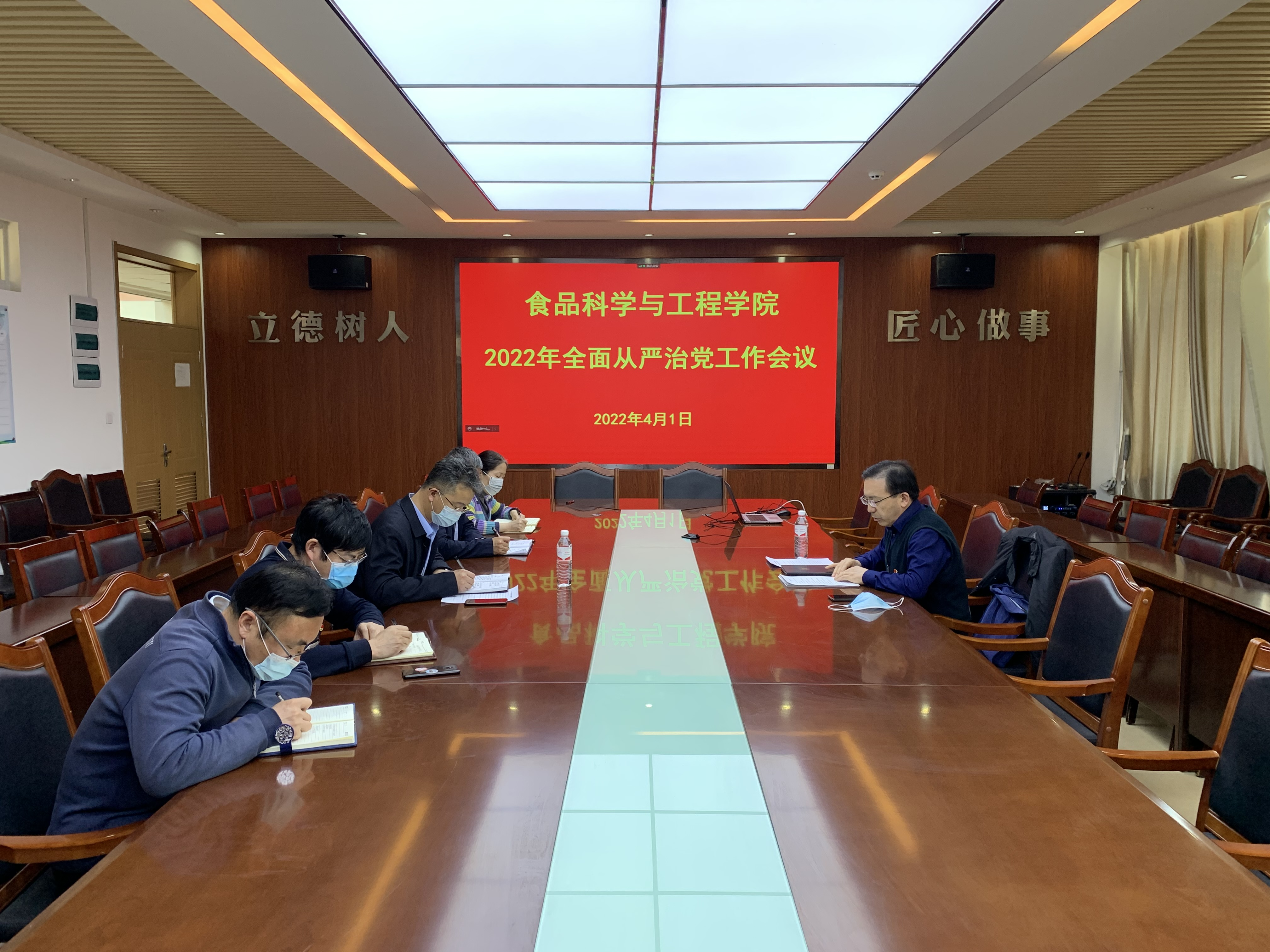 4月1日,beat365在线体育官网于食品楼召开全面从严治党工作会议。副校长赵金山出席会议并讲话,学院领导班子成员、科级以上干部参加会议。